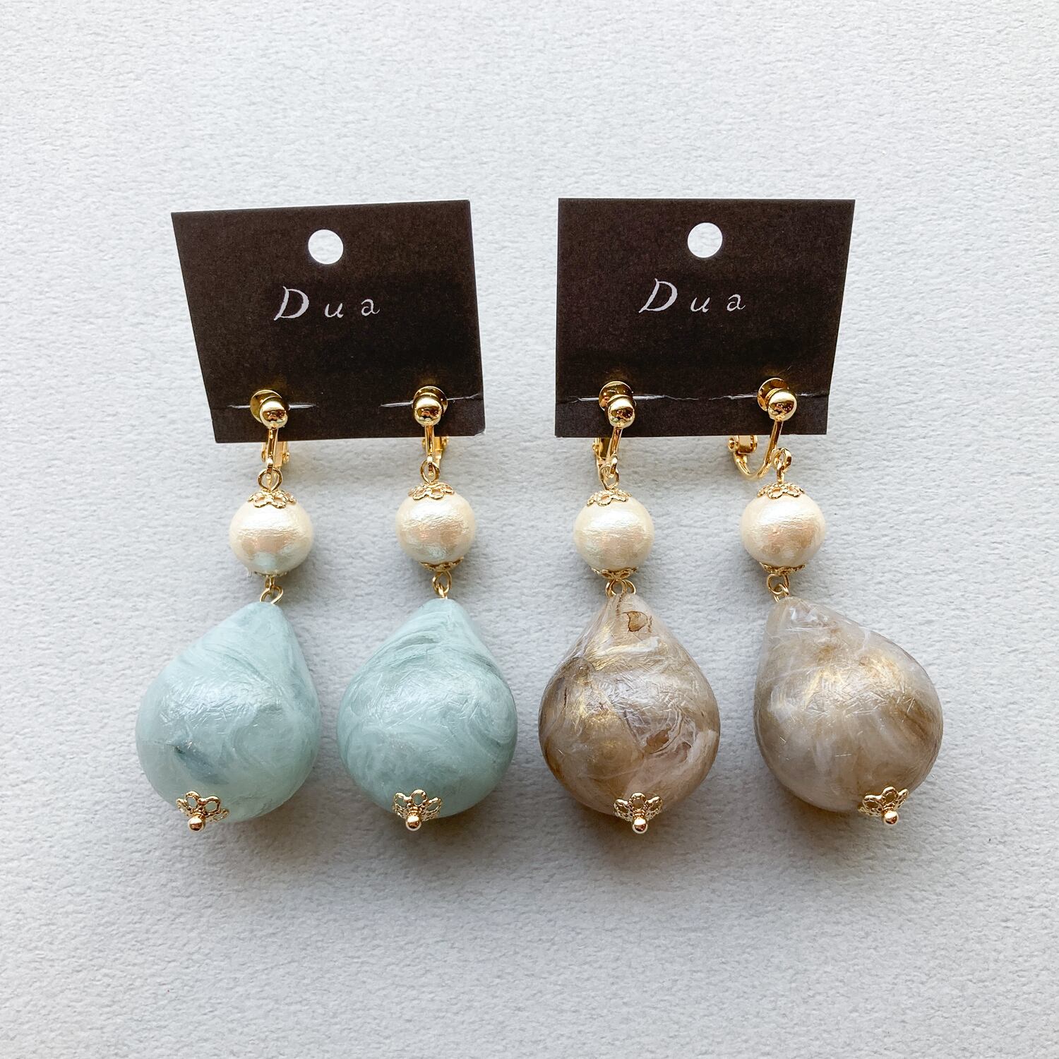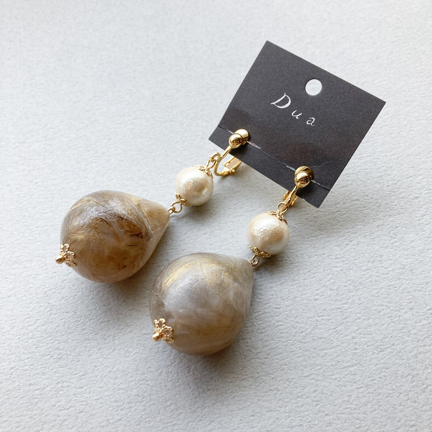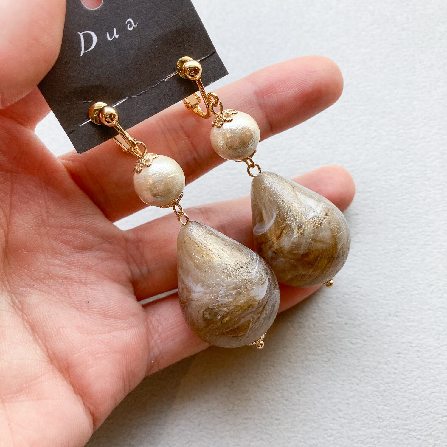 グレージュしずく型ビーズとコットンパールの〈ピアス/イヤリング〉