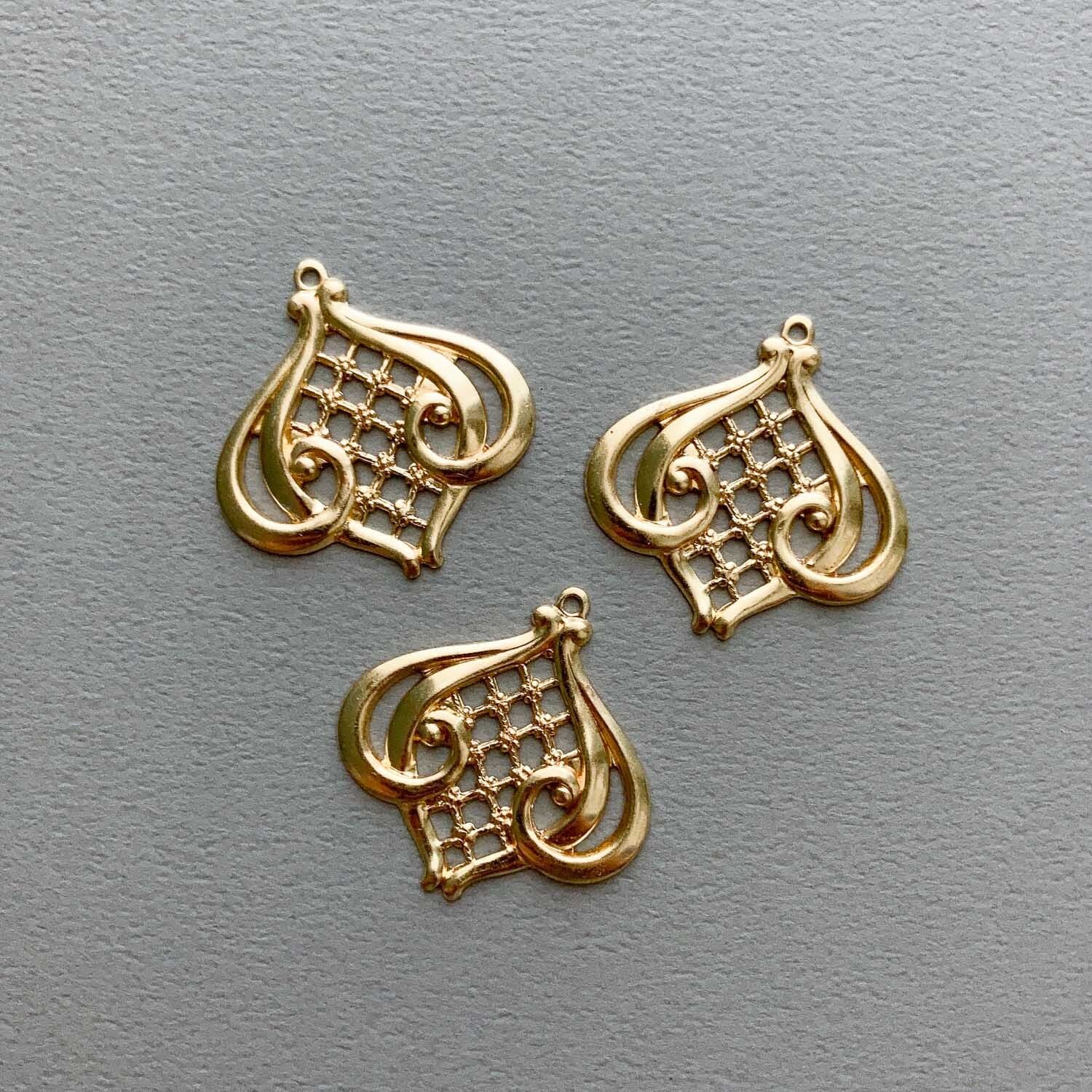 アメリカ製の真鍮スタンピングチャーム。 パッと華やかな印象に◎ 耳飾りにはもちろん小物の装飾にもおすすめです。 ■販売単位: 1個 ■素材:真鍮(ラッカー塗装済み) ■サイズ:約27×27×1mm ■カラー:ゴールド ■輸入元:アメリカ合衆国 ■真鍮製のため経年劣化により変色致します。 しみのような変色・汚れがある場合がございます。 予めご了承ください。 ■商品コード:BR00025