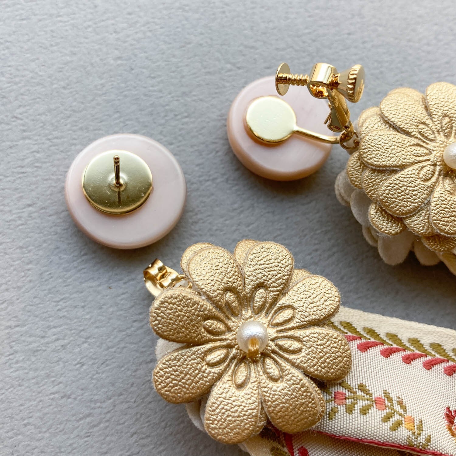 猫トップとお花×MOKUBAジャガードリボンの〈ピアス/イヤリング〉