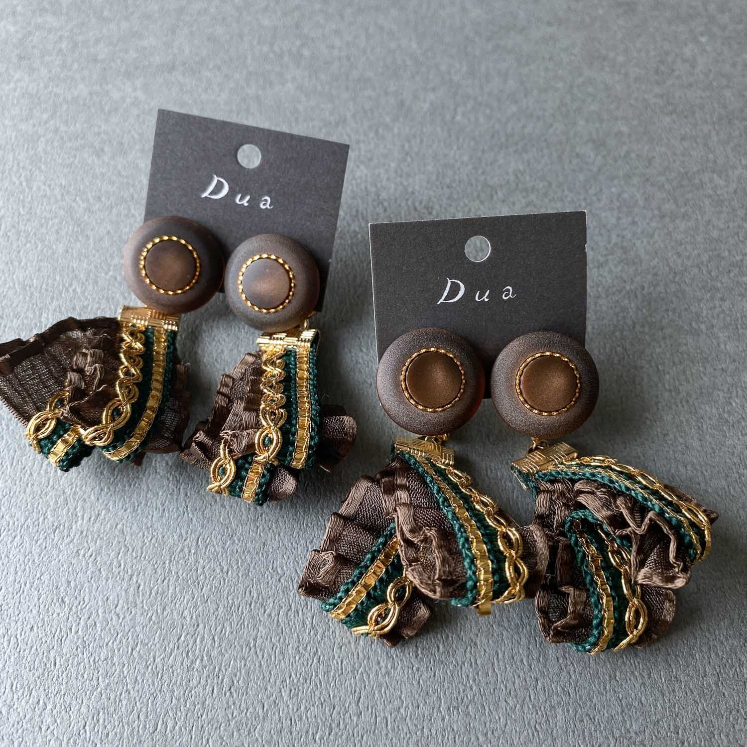 フランスボタンとプリーツ×インドリボンタッセルの〈ピアス/イヤリング〉