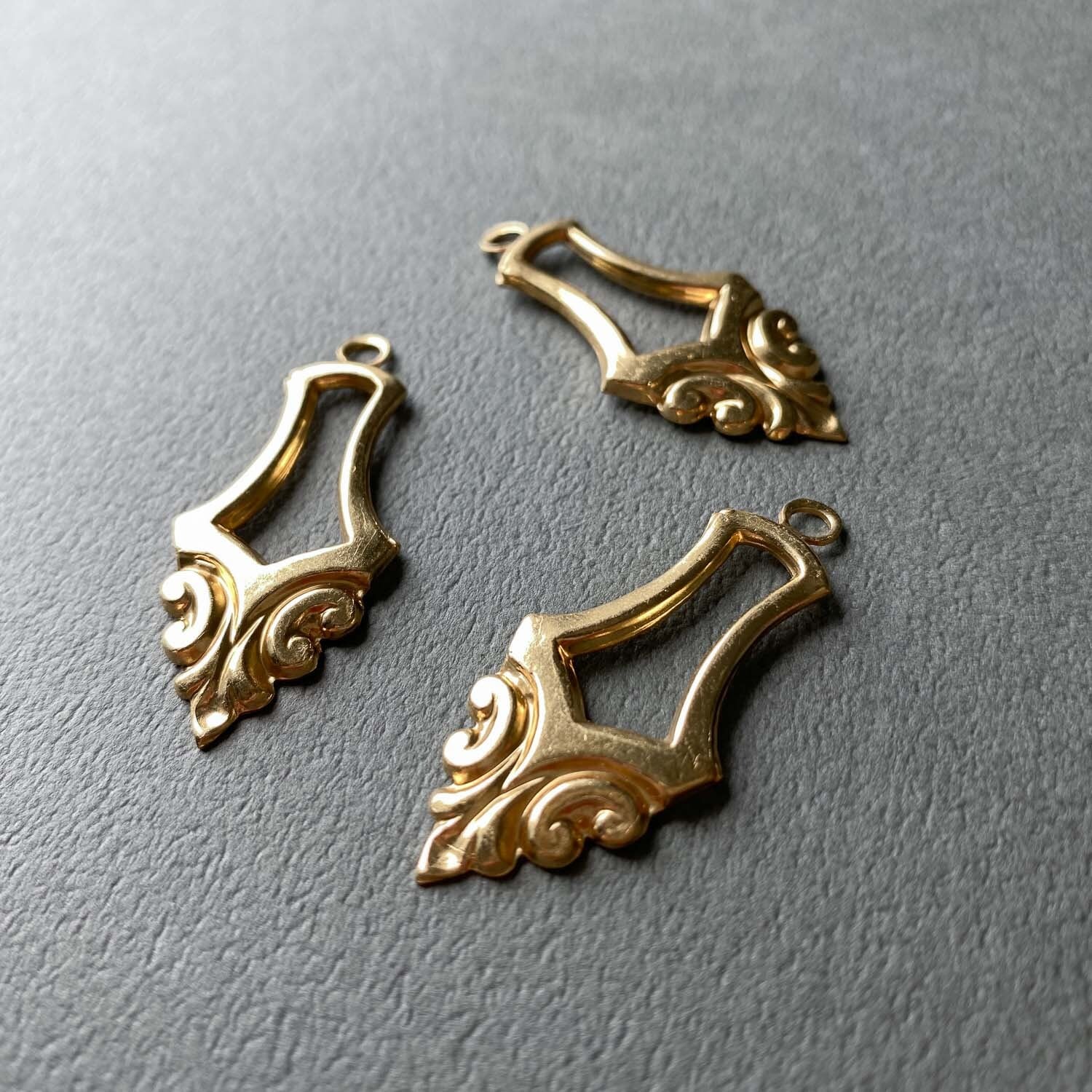 〈最終入荷〉USA真鍮 模様付歪み五角形フレームチャーム(片カン/下3カン)