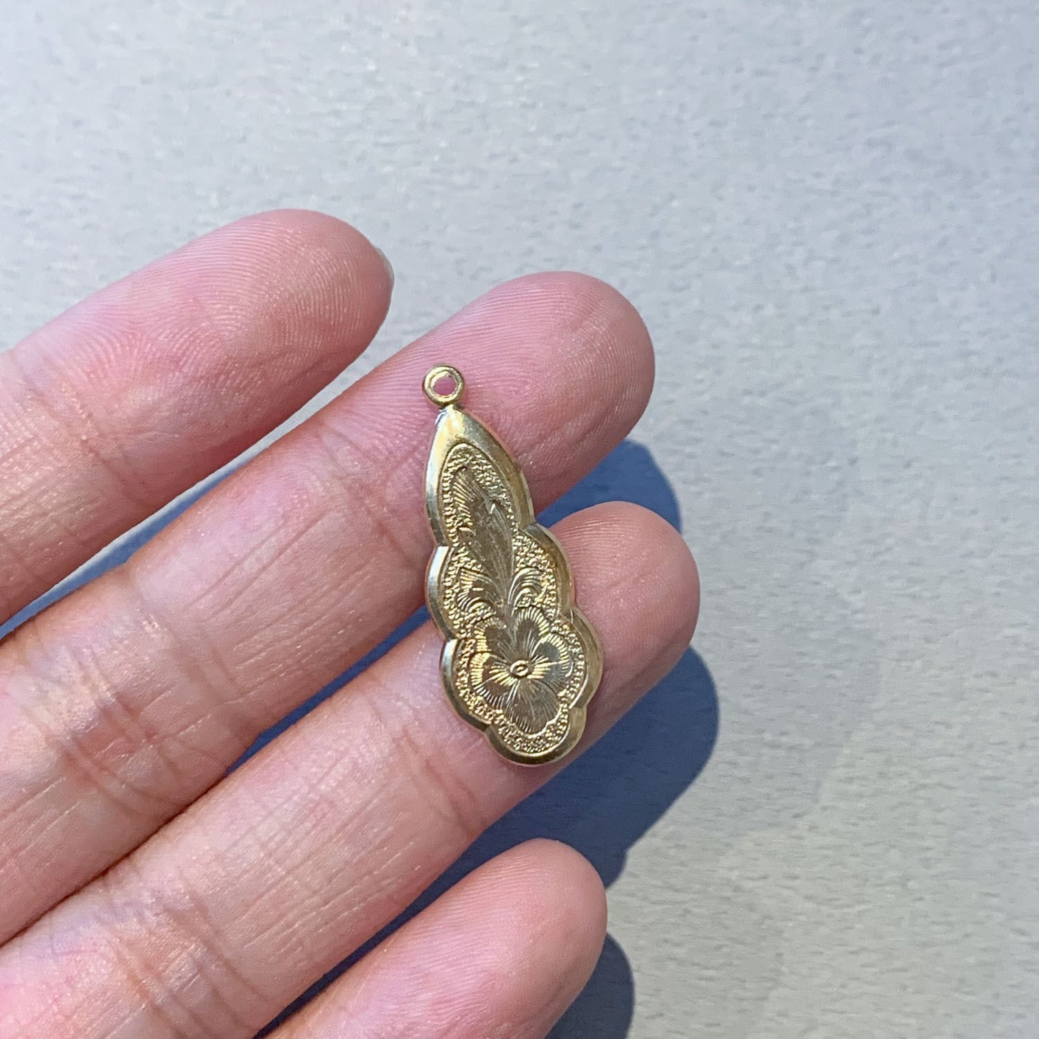 〈再入荷〉USA真鍮 パンジー柄入りフリルしずくチャーム