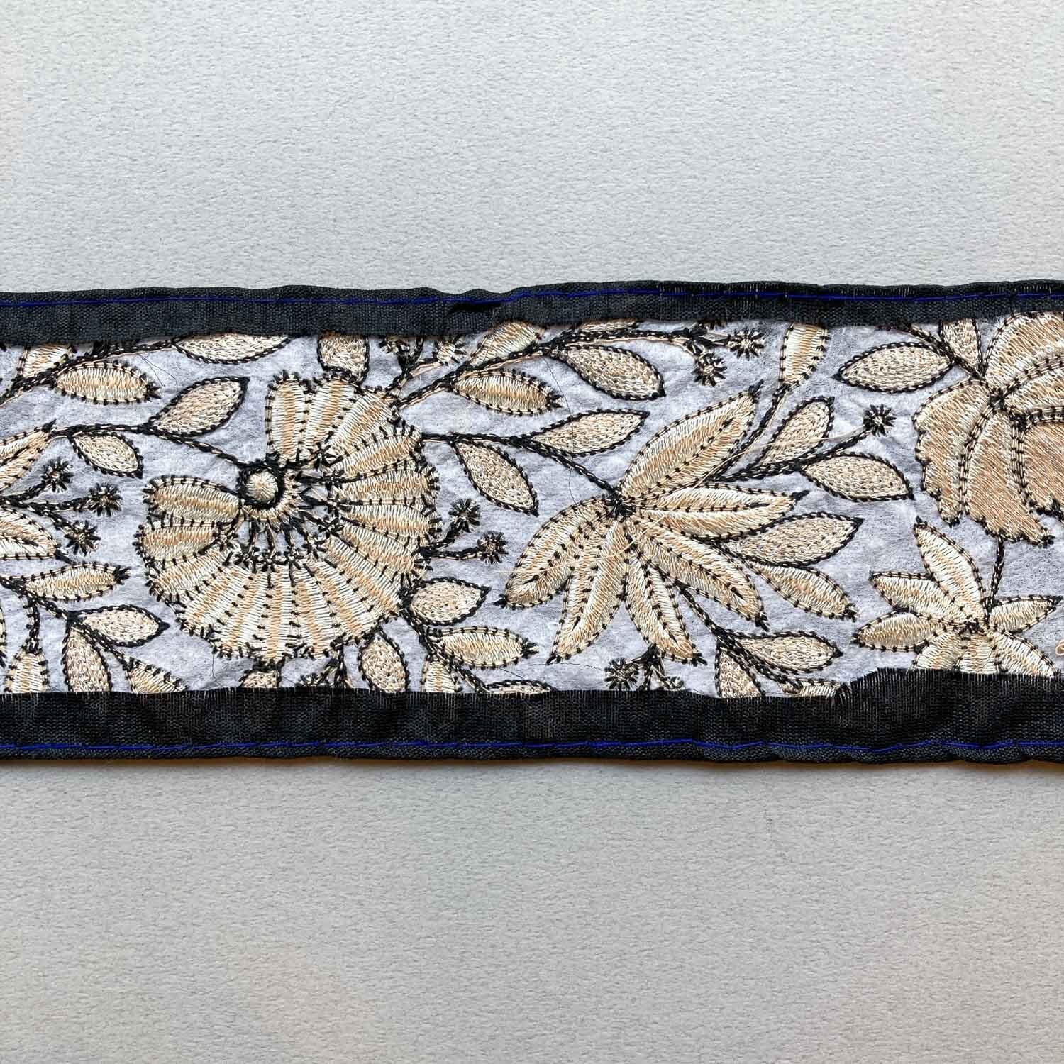幅太縁取りシンプル草花刺繍リボン(1mカット)