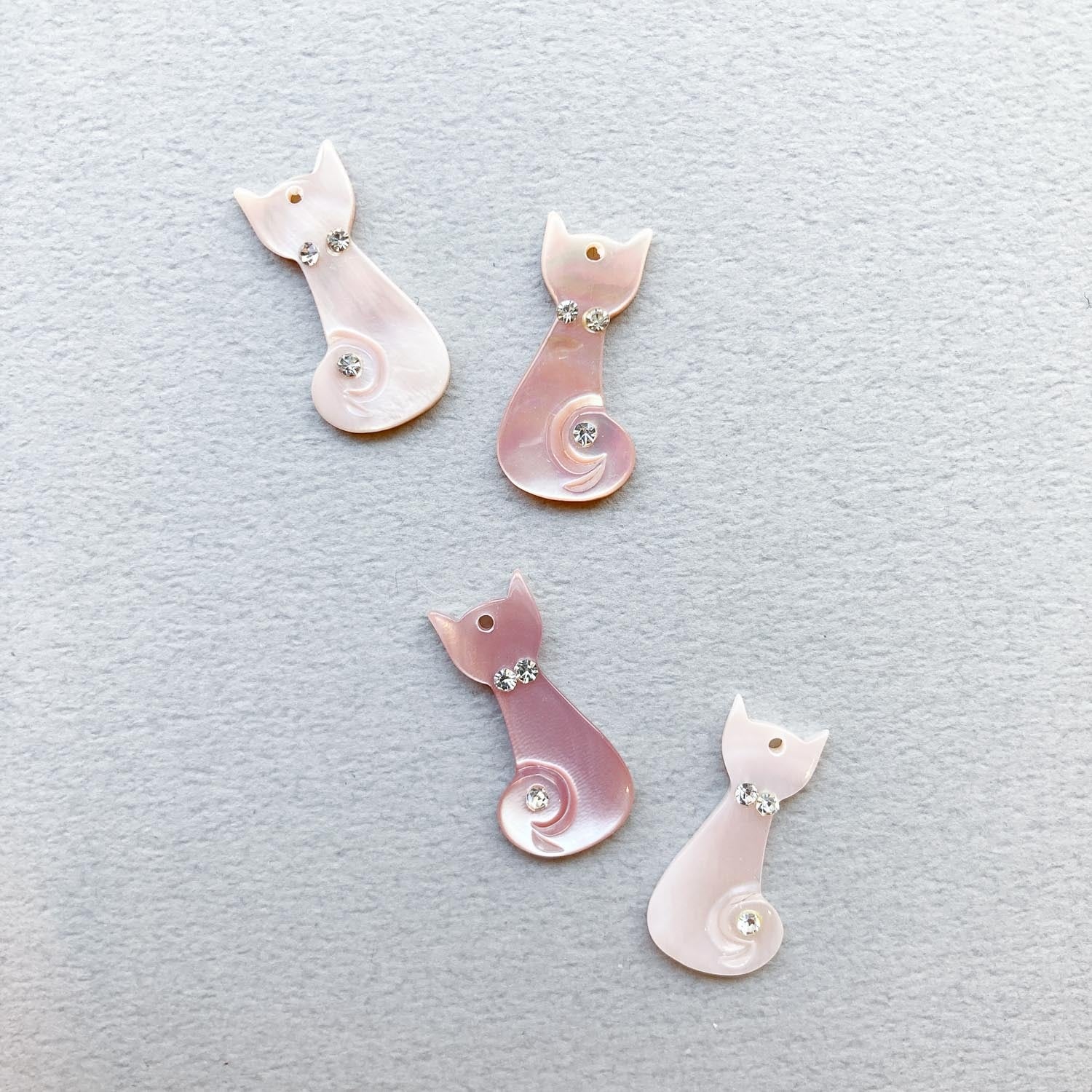 ビジュー付きお座り猫シェルチャーム(ピンク)