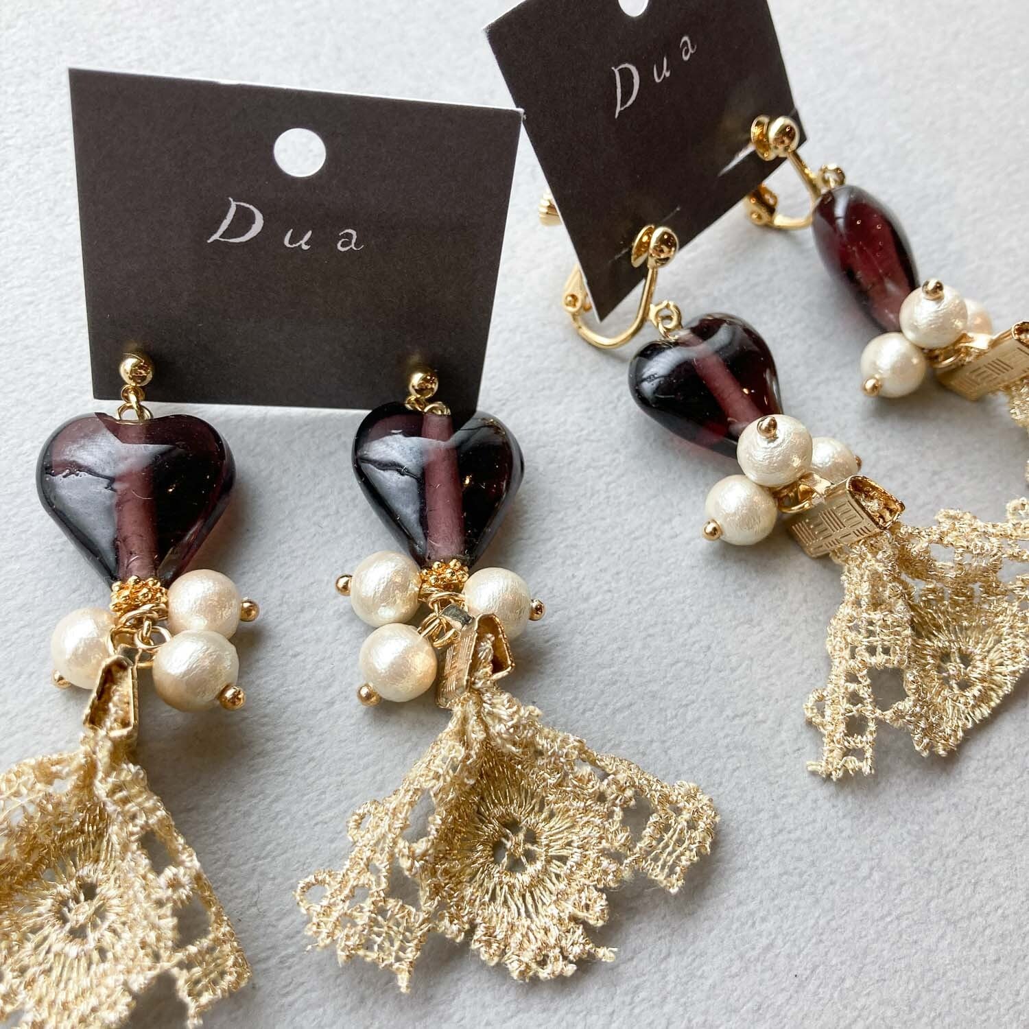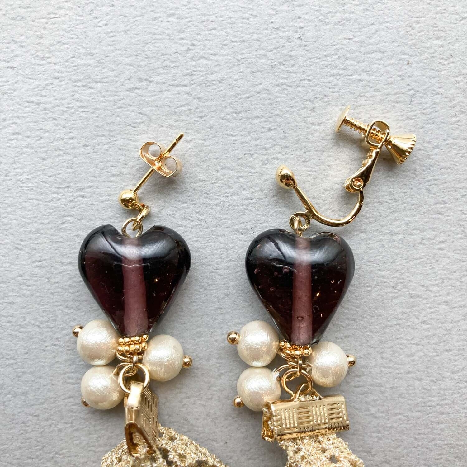 ハートビーズとゴールドレースタッセルの〈ピアス/イヤリング〉