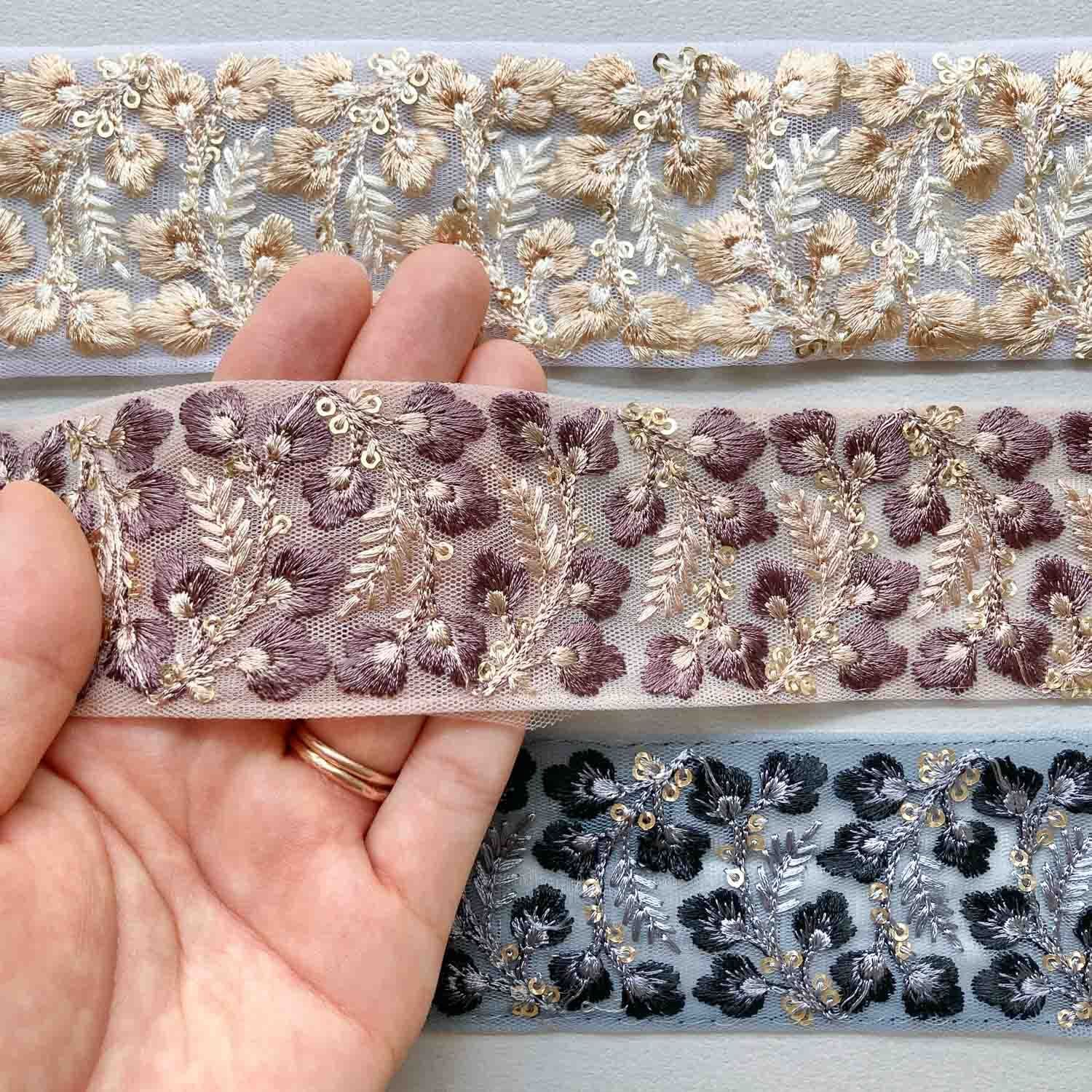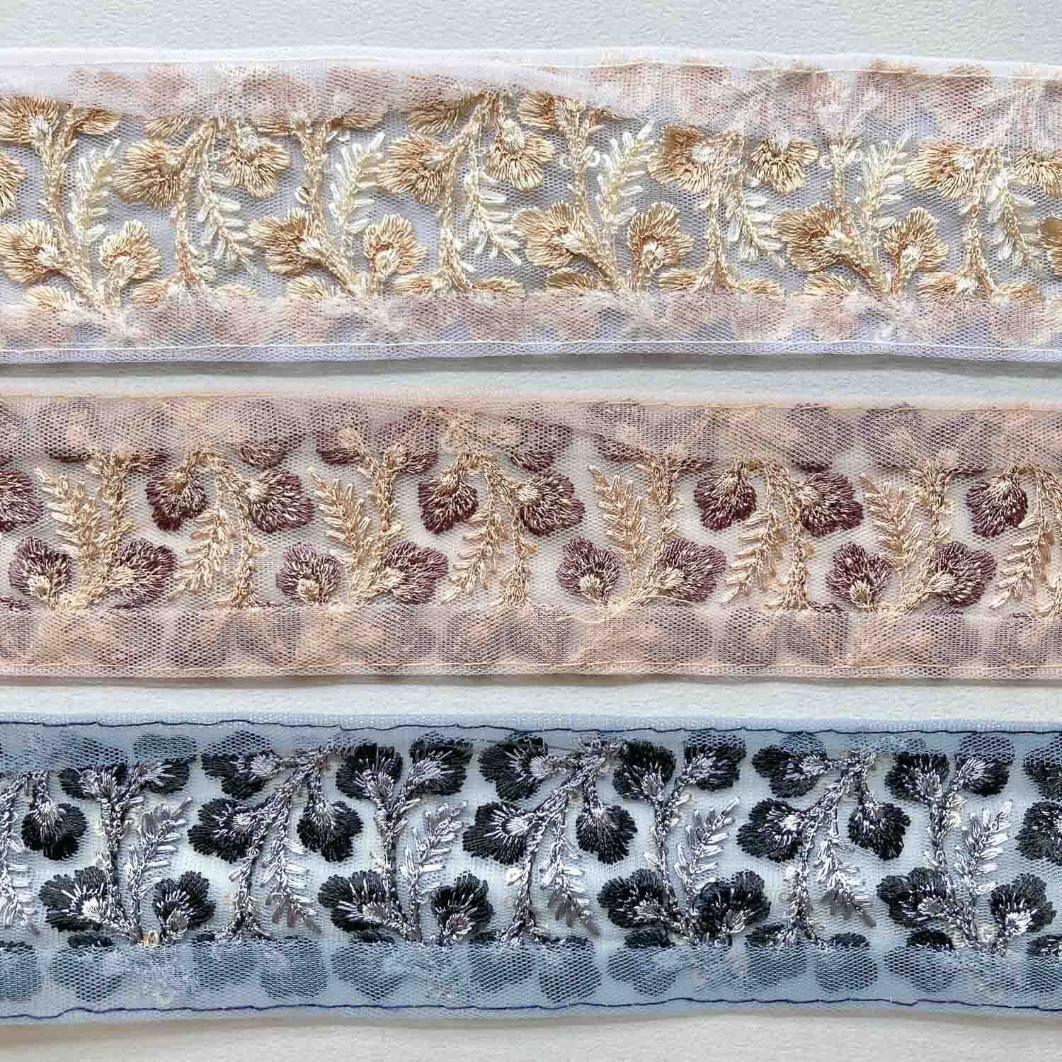 〈再入荷〉小花と葉っぱの2トーンカラーチュールリボン(1mカット)