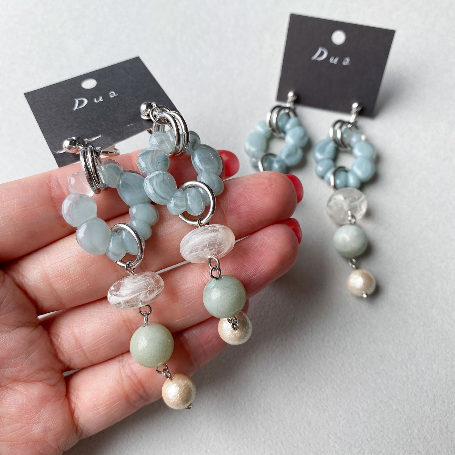 水色のグラデーションが素敵な耳飾り。
