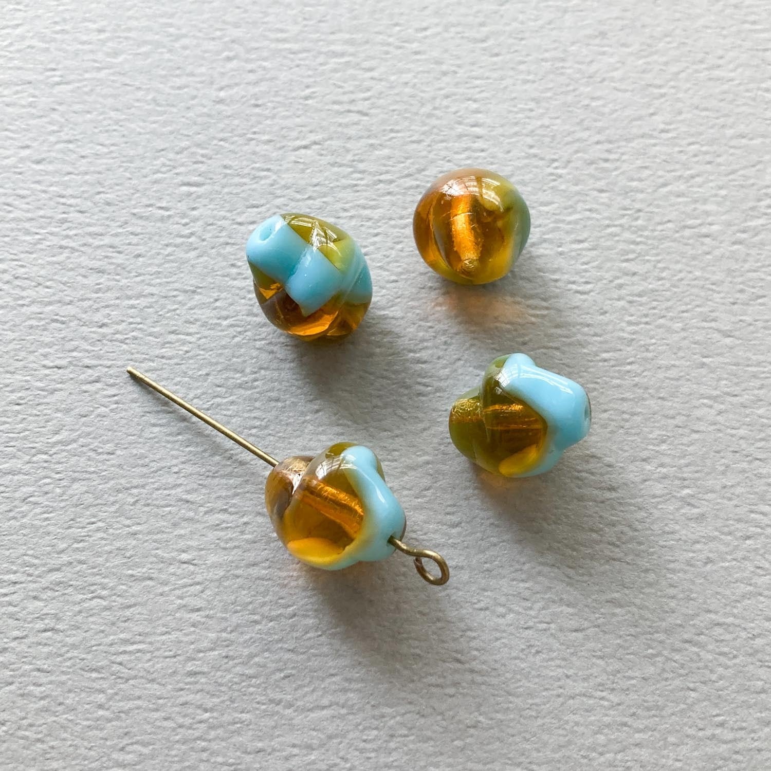 巻貝のような珍しい形のチェコガラスビーズ。