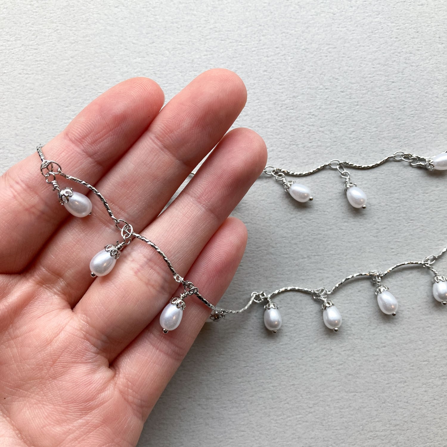 キャップ付きしずくパールチェーン(50cm)