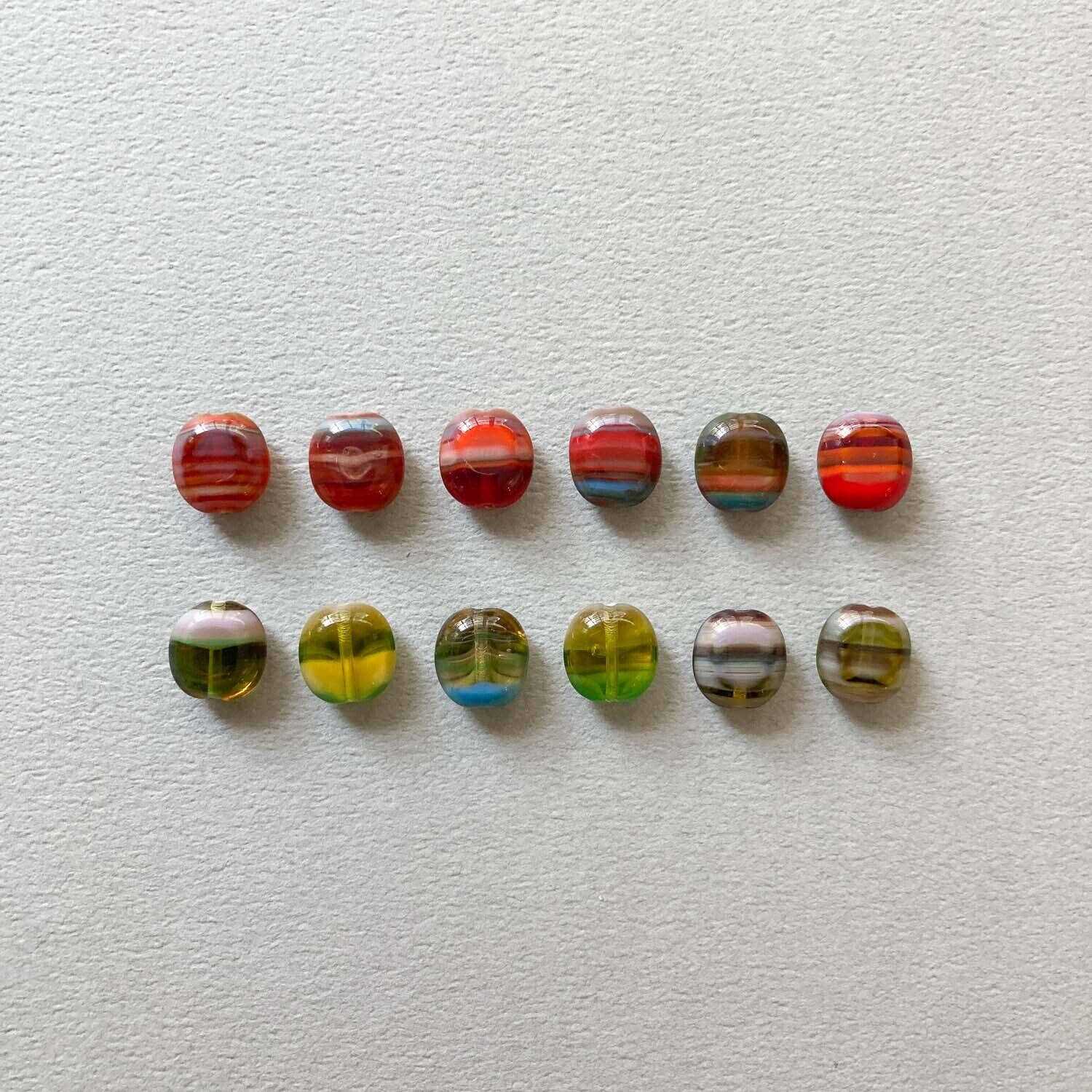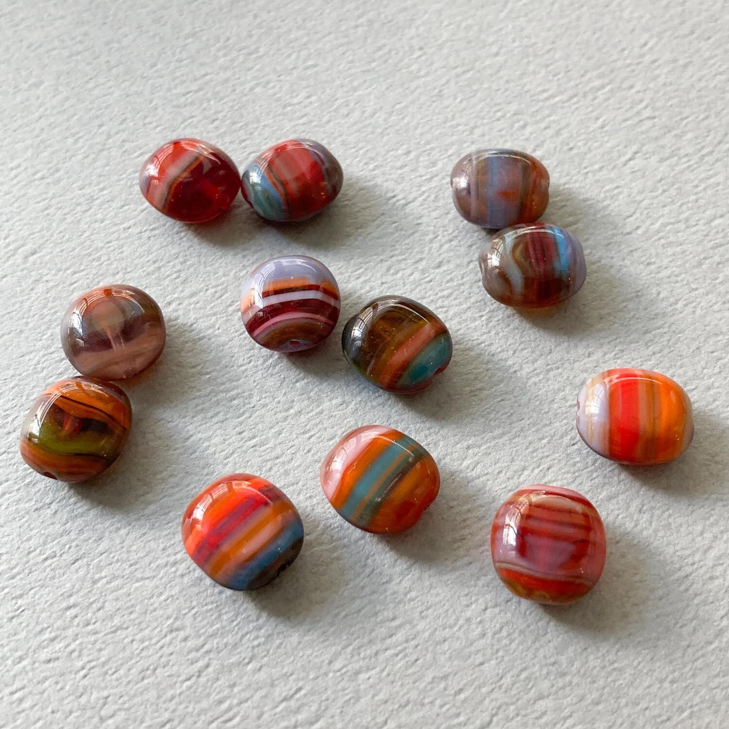 色が混ざった綺麗なマーブル模様が魅力的なチェコガラスビーズ。
