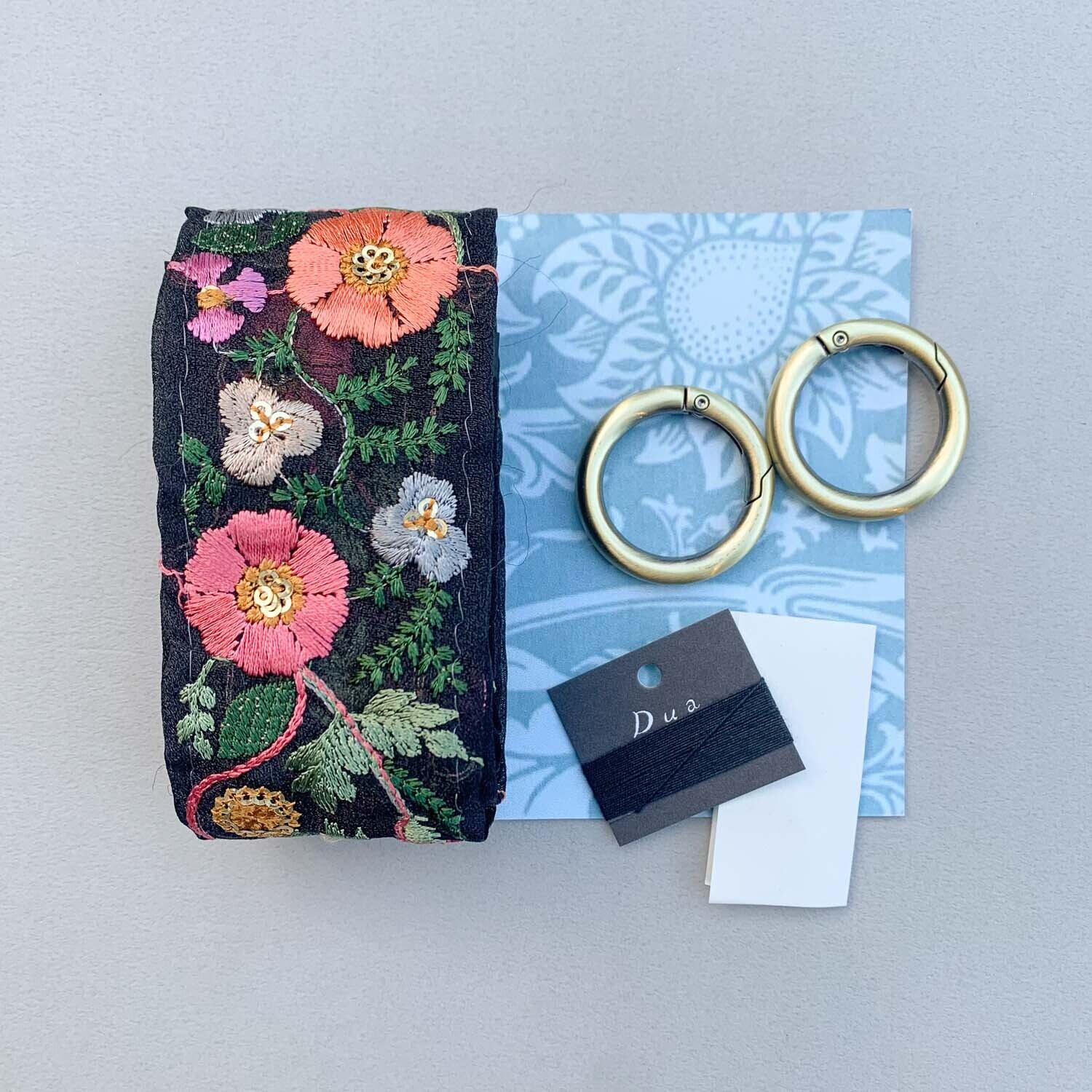 刺繍が素敵なインドリボンで作るショルダーストラップのキット。