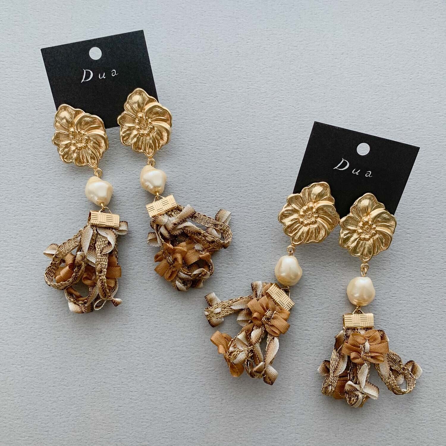 お花のUSA真鍮チャームとリボンが可愛い耳飾り。