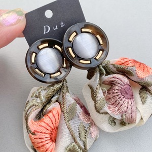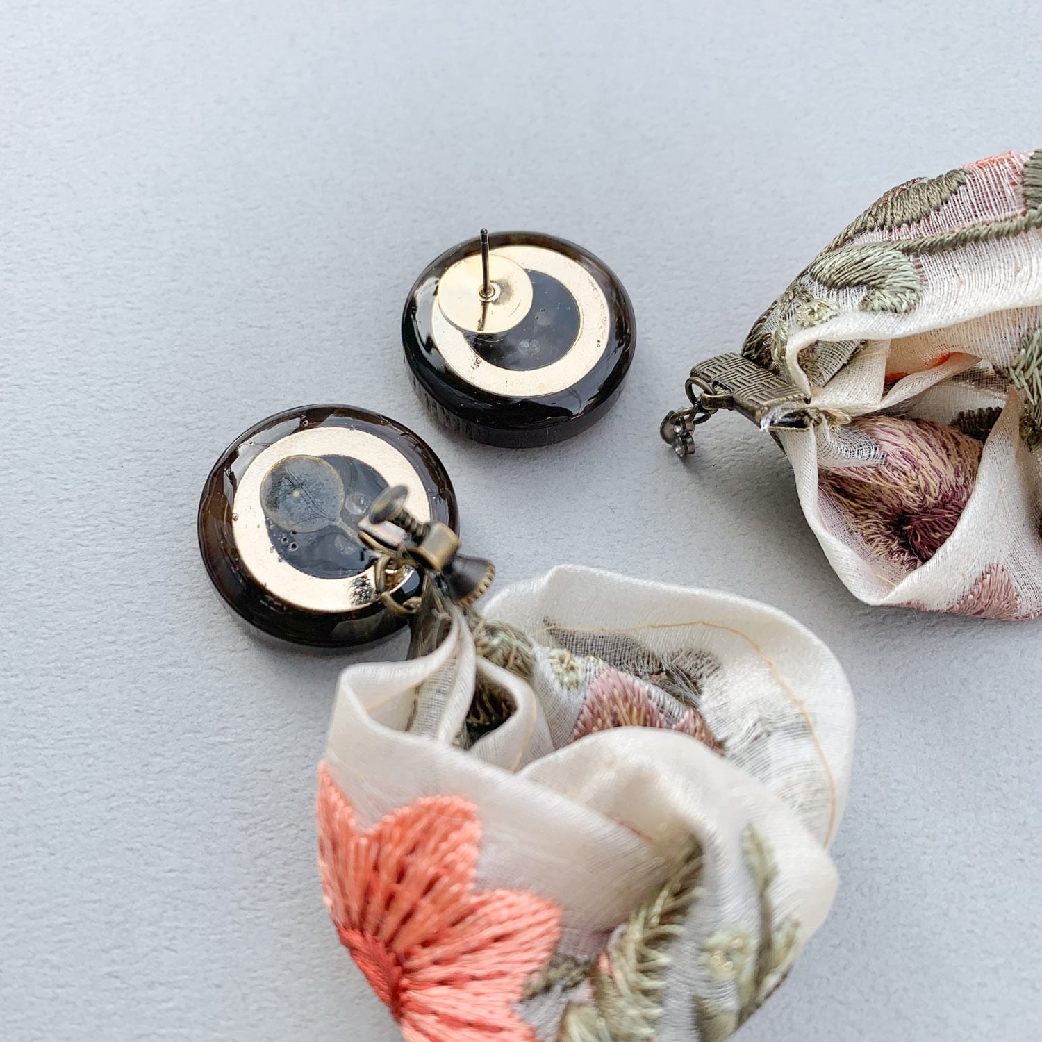 茶ボタンとお花ふんわりタッセル〈ピアス/イヤリング〉
