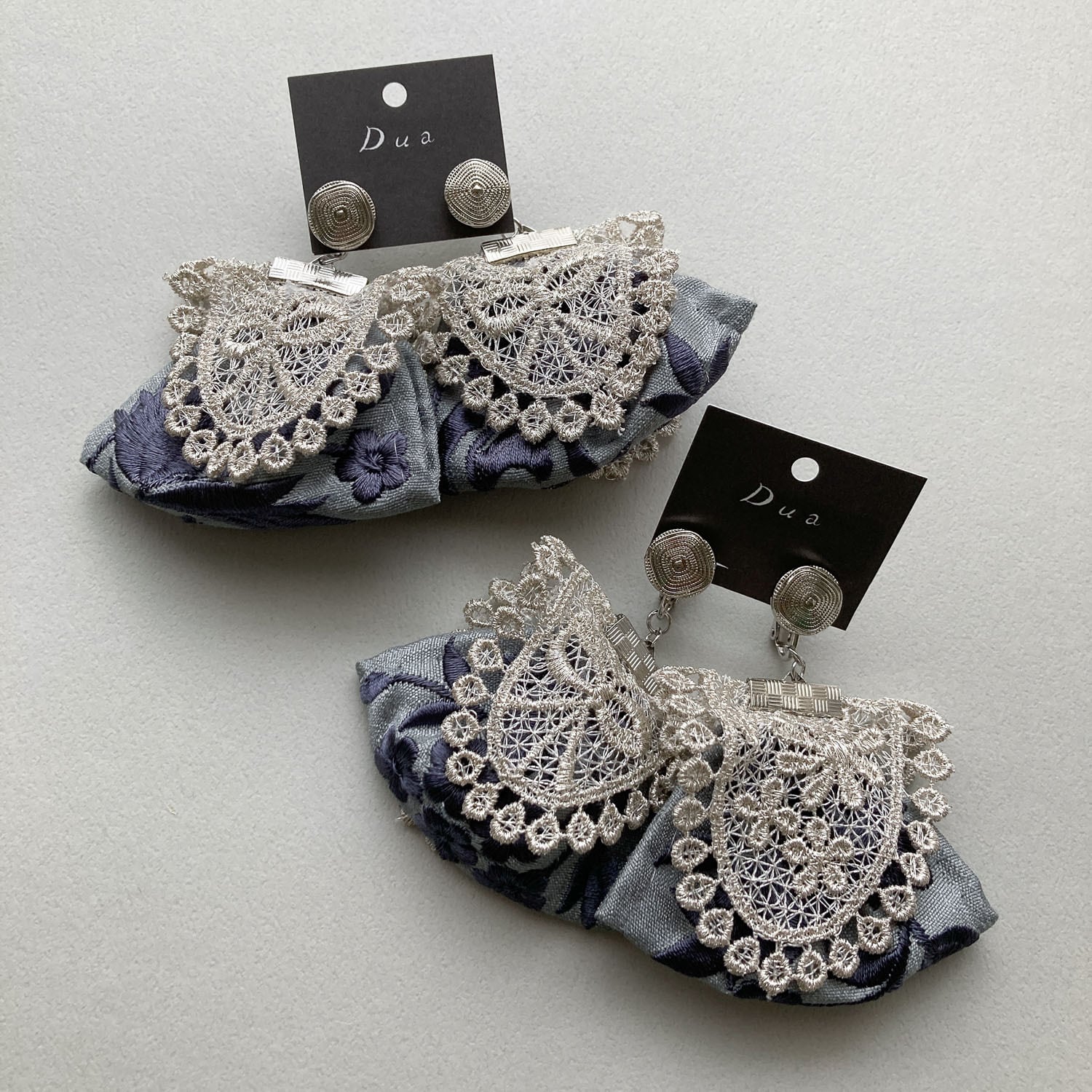 シルバーレースと刺繍リボンの大ぶりタッセル〈ピアス/イヤリング〉