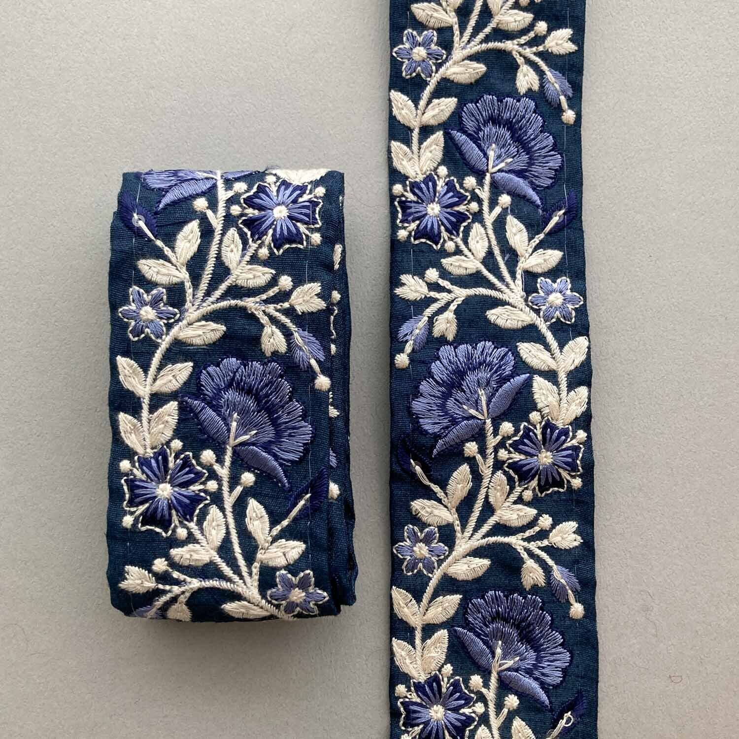 〈再入荷〉白い茎の扇型お花刺繍リボン(1mカット)