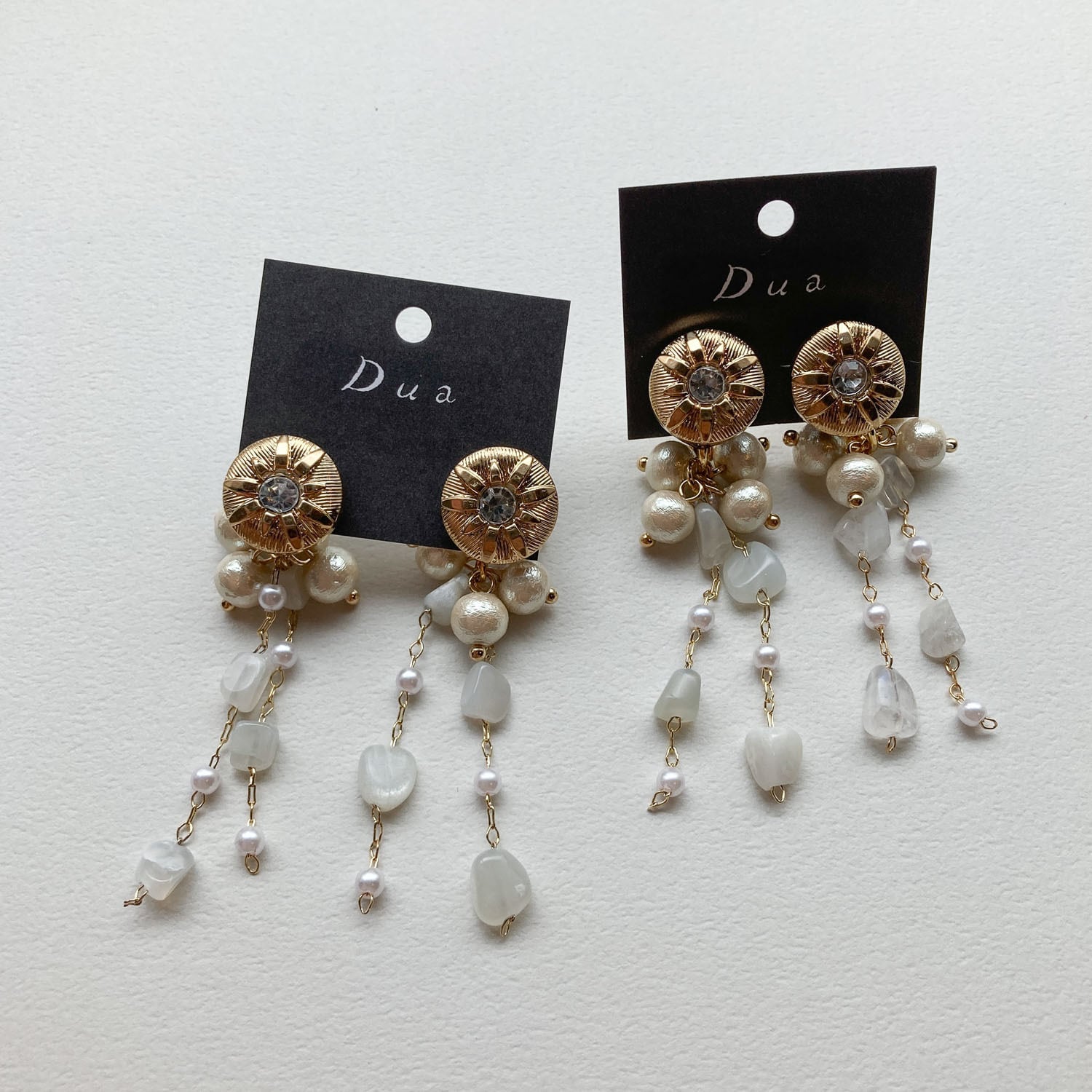 ビジュー付ゴールドボタンと天然石チェーンの〈ピアス/イヤリング〉