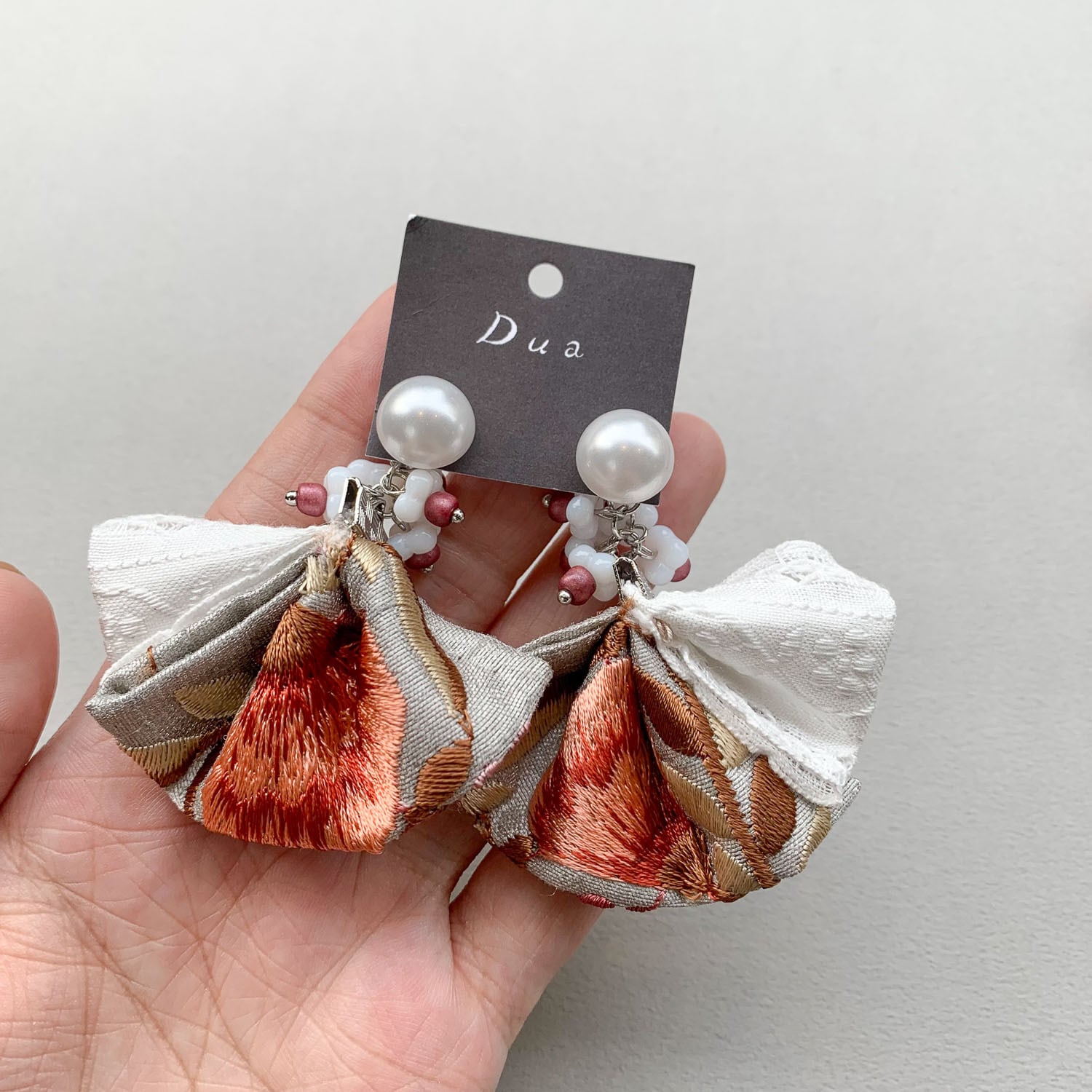 パールボタンと2種リボンタッセルの〈ピアス/イヤリング〉