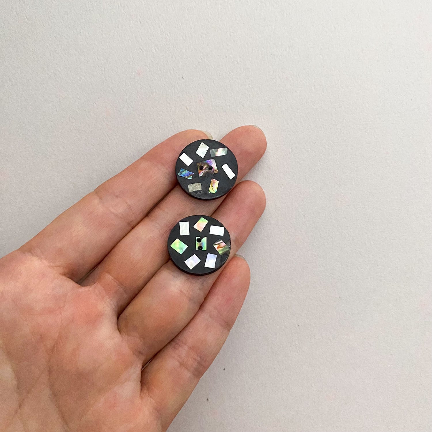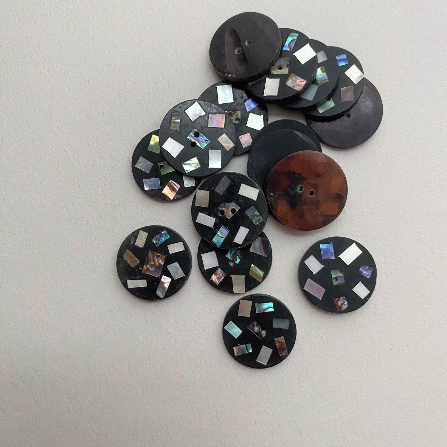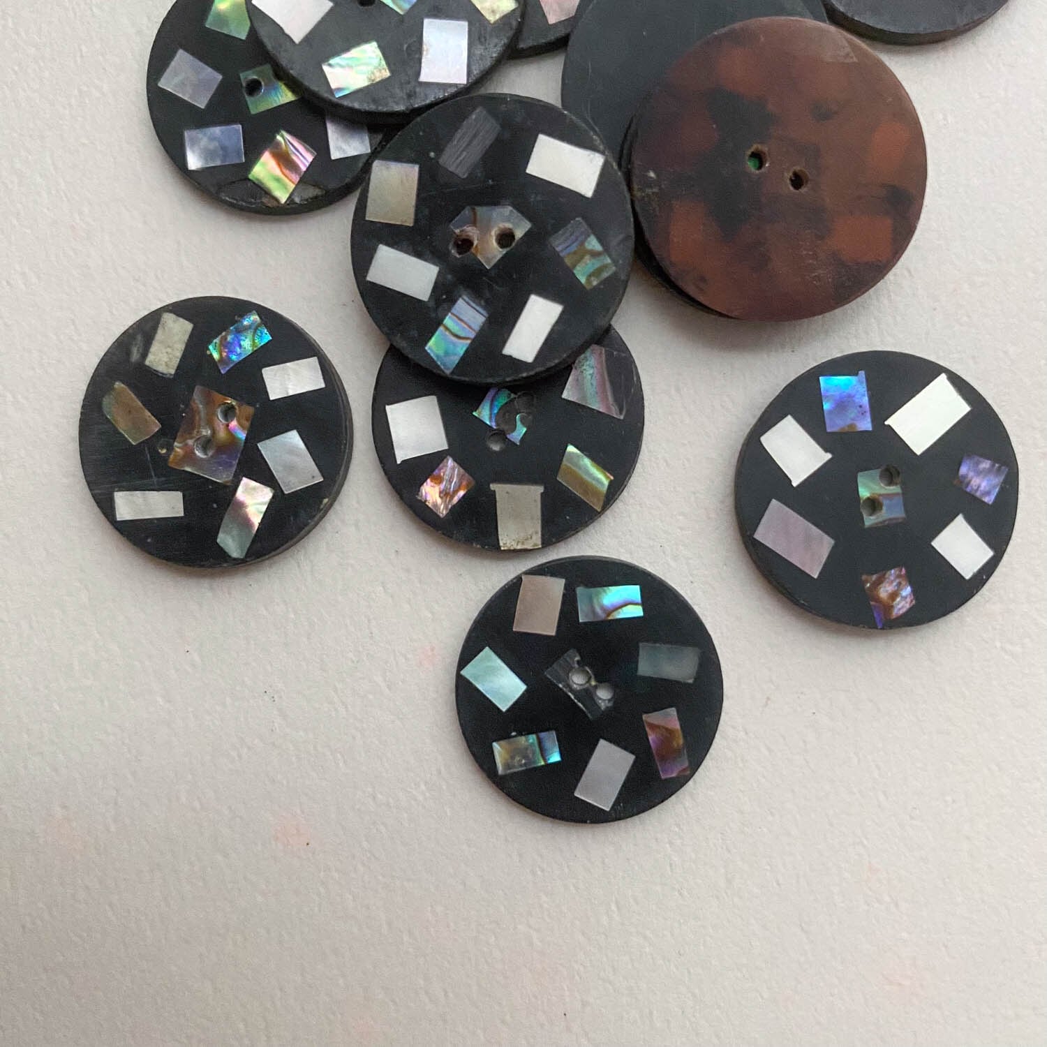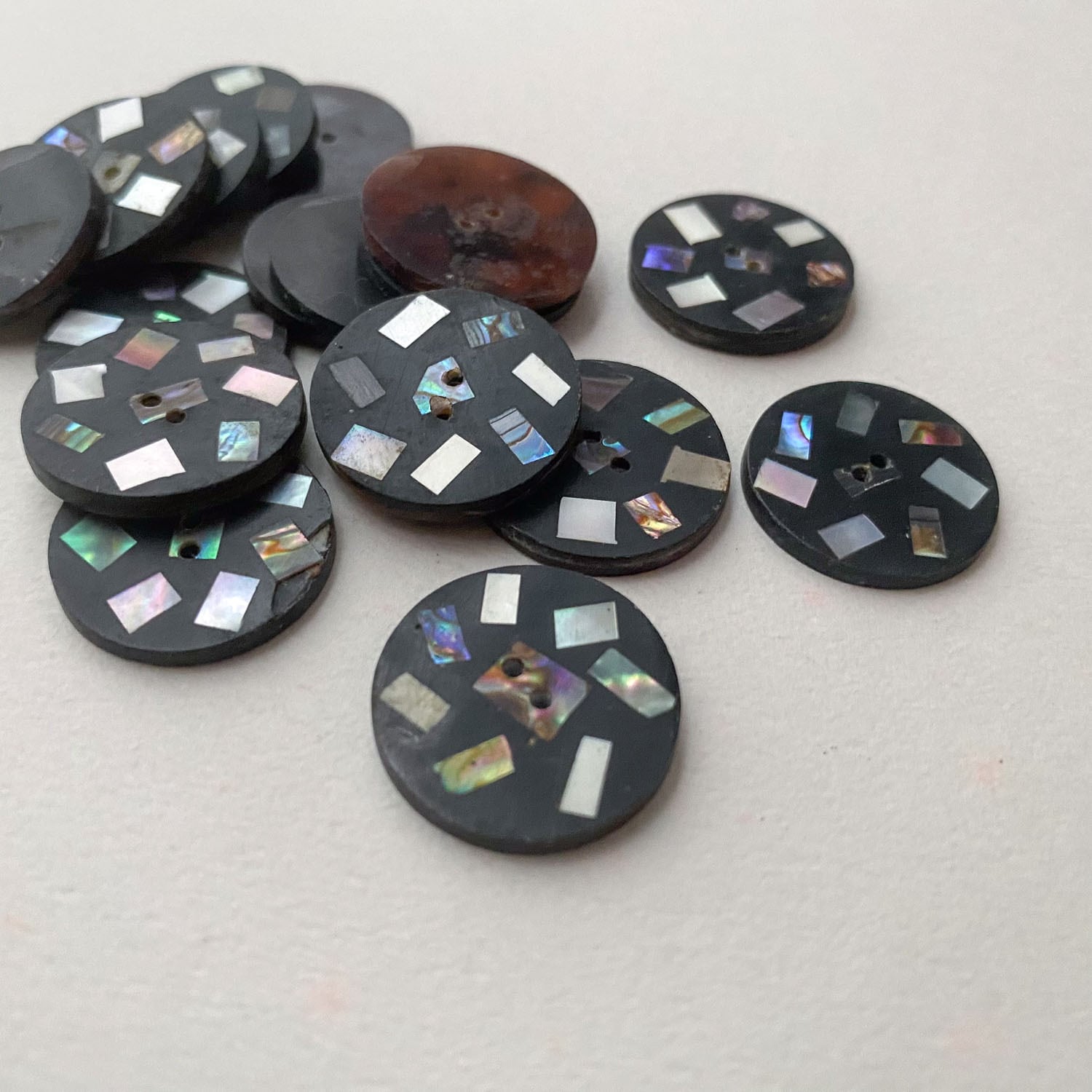 〈再入荷〉テラゾー風スクエアシェル入りラウンドボタン(20mm)