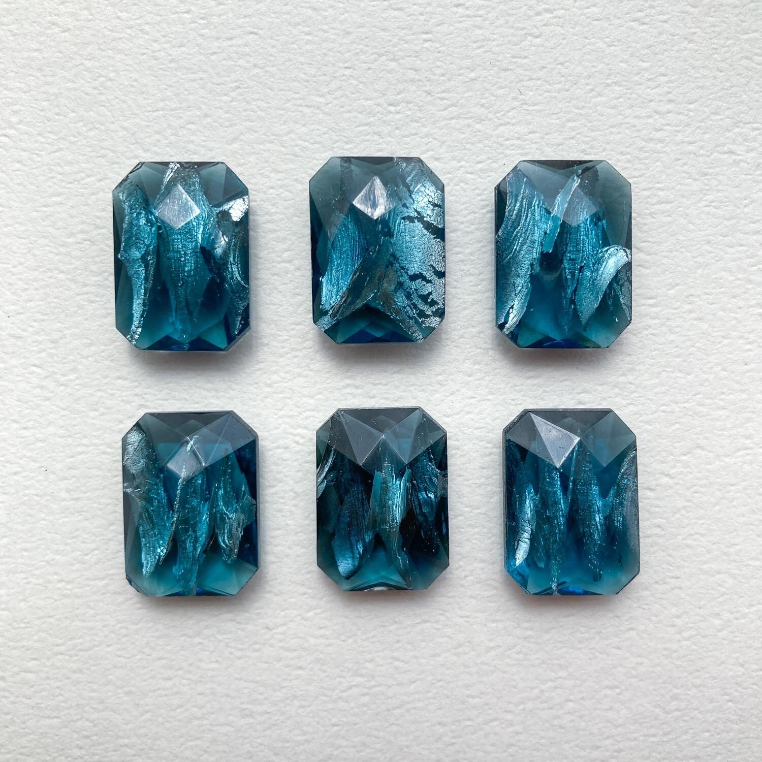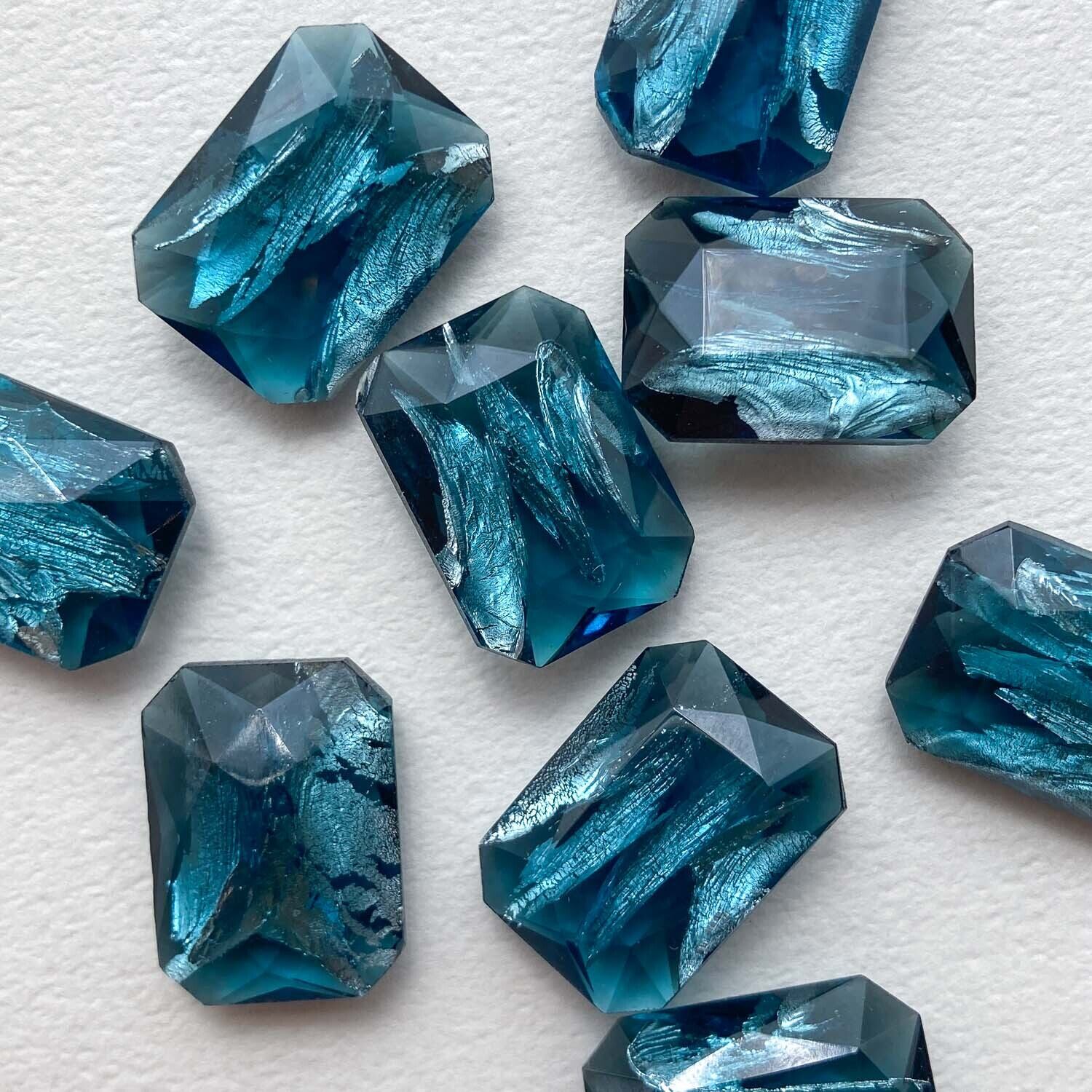 箔入りネイビー八角長方形チェコガラス(ファセットカット)