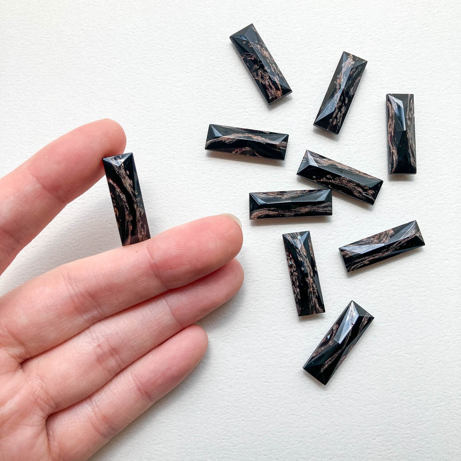 シックな色合いに細かいラメが煌めくチェコガラスパーツ。