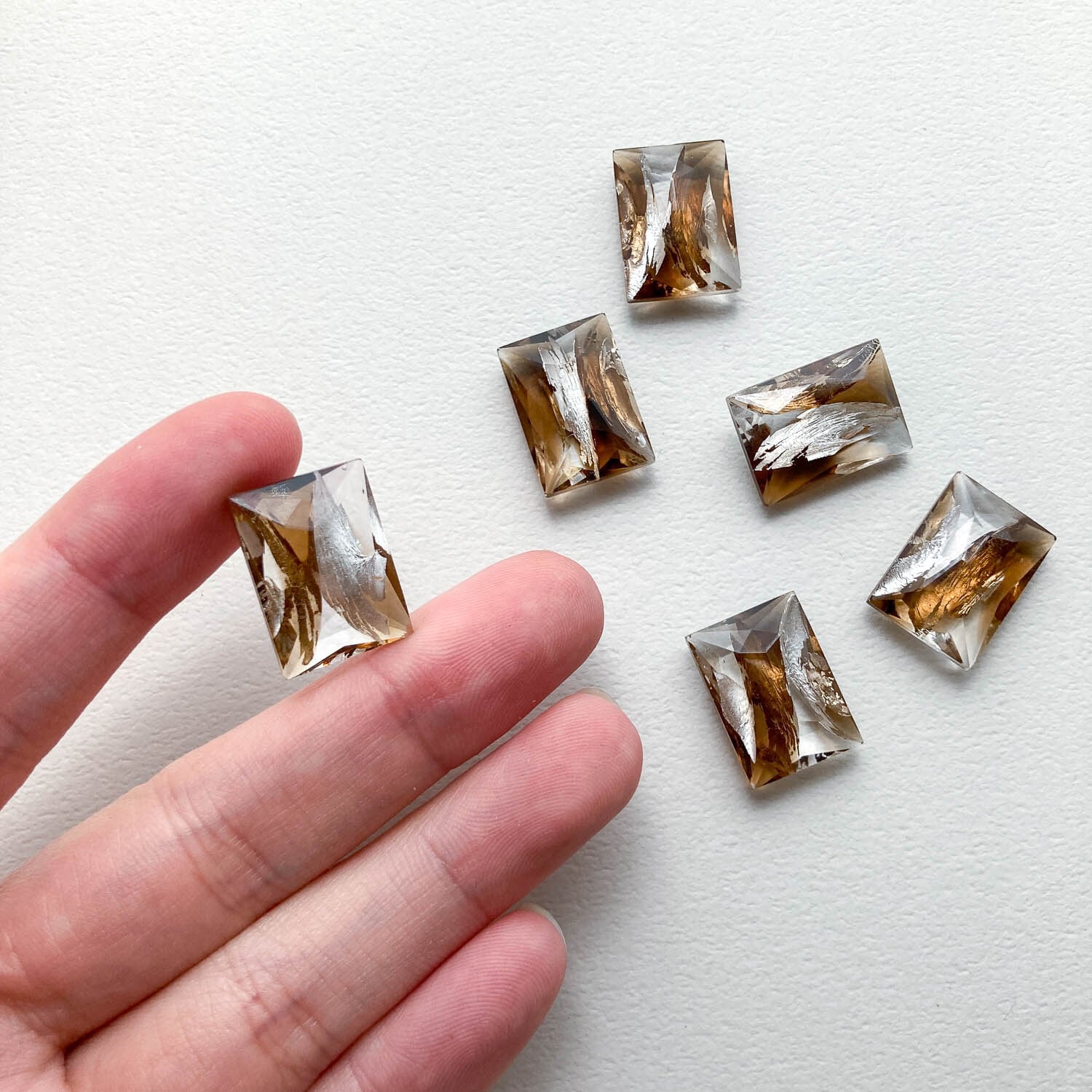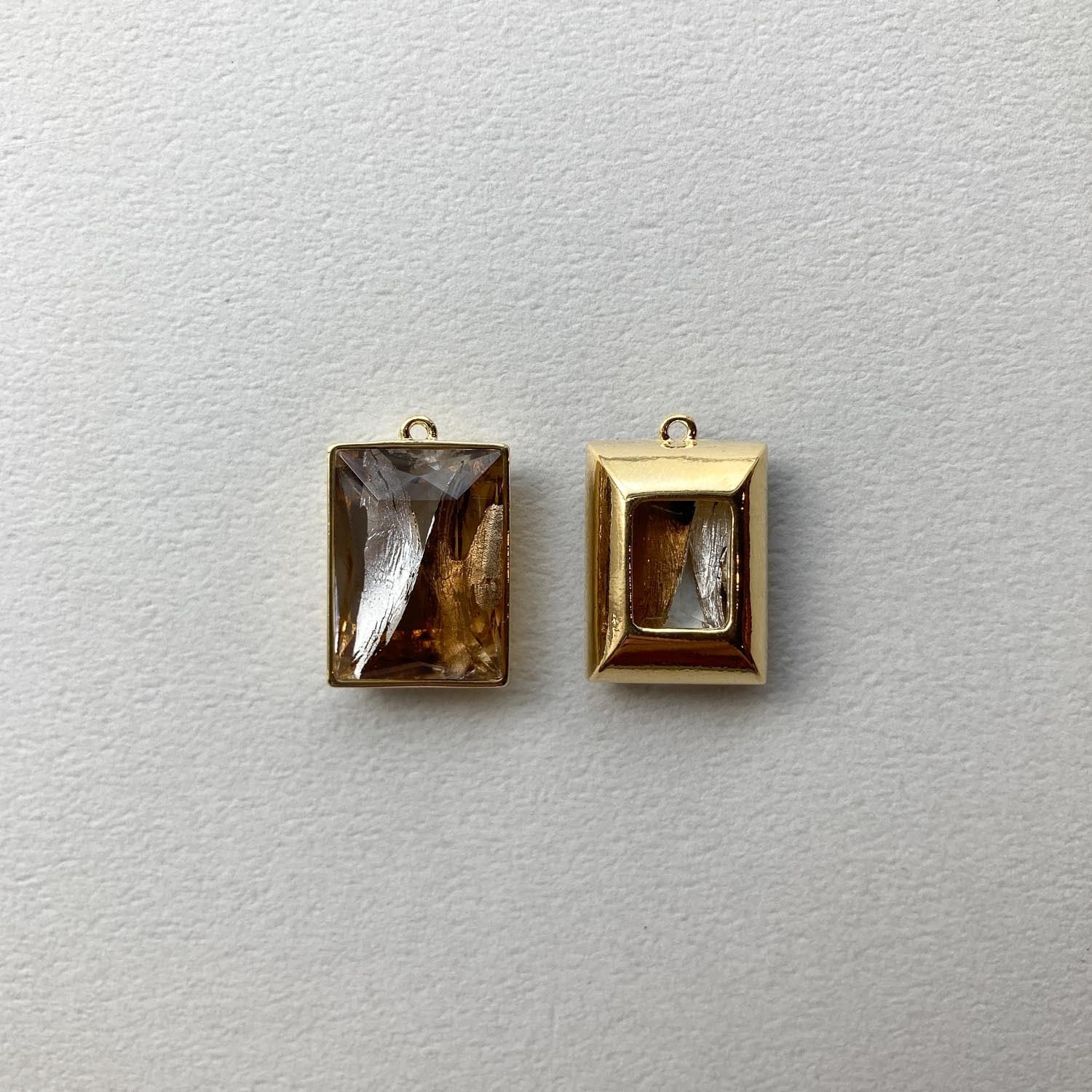 ツートーン箔入り長方形チェコガラス(ファセットカット) *チャームオプションあり