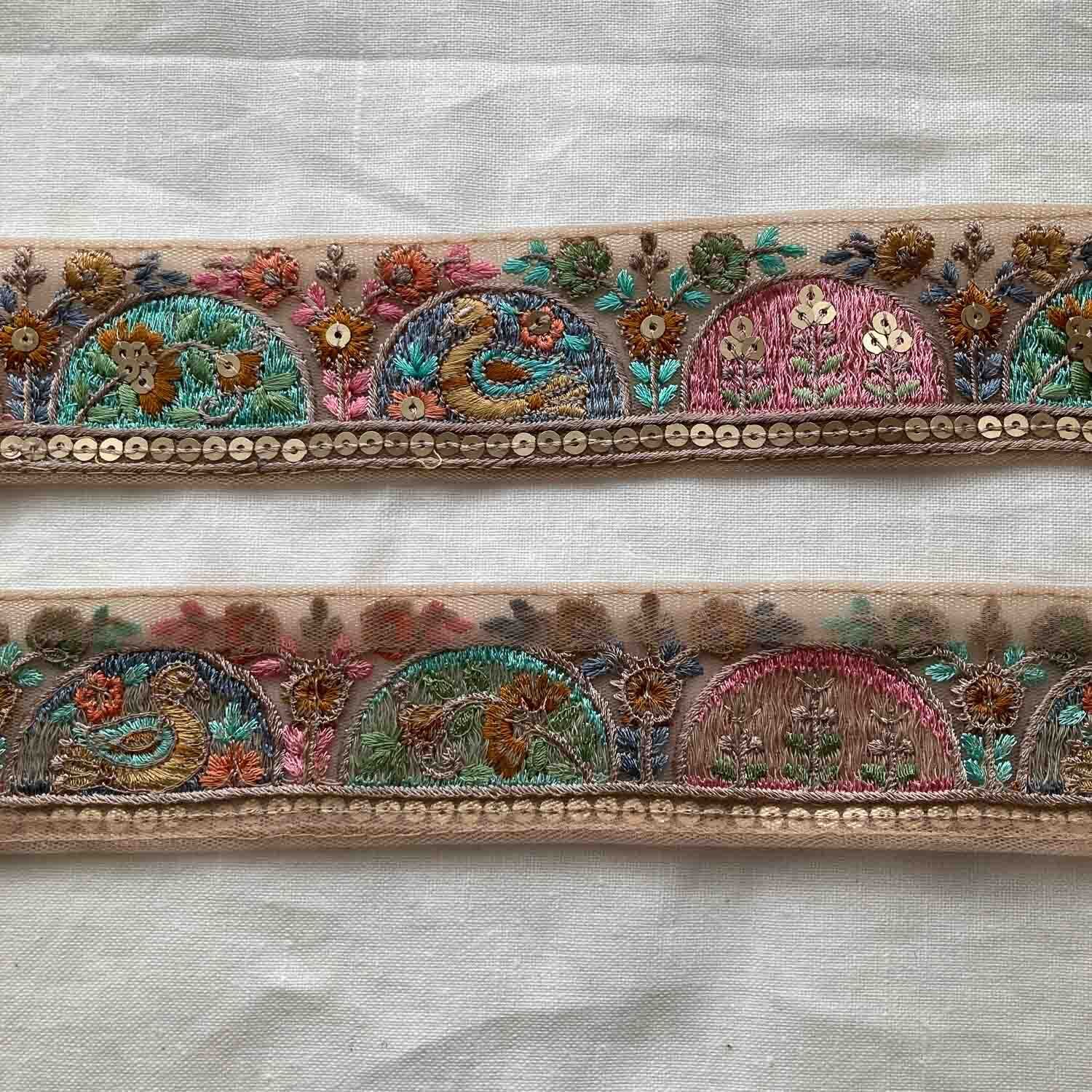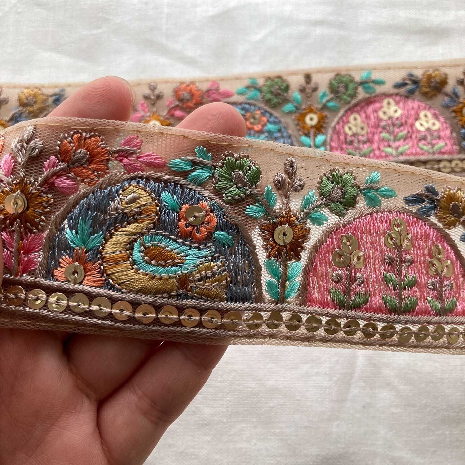 アーチとお花と鳥の刺繍チュールリボン(1mカット)
