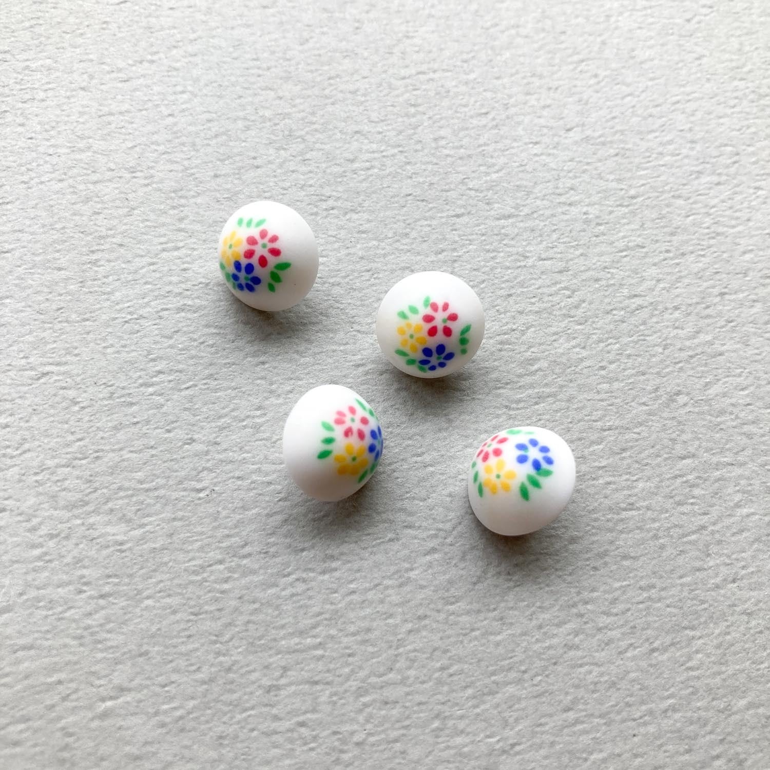 〈最終入荷〉カラフルお花模様入マット白ドームボタンパック(4p) ※セール対象外