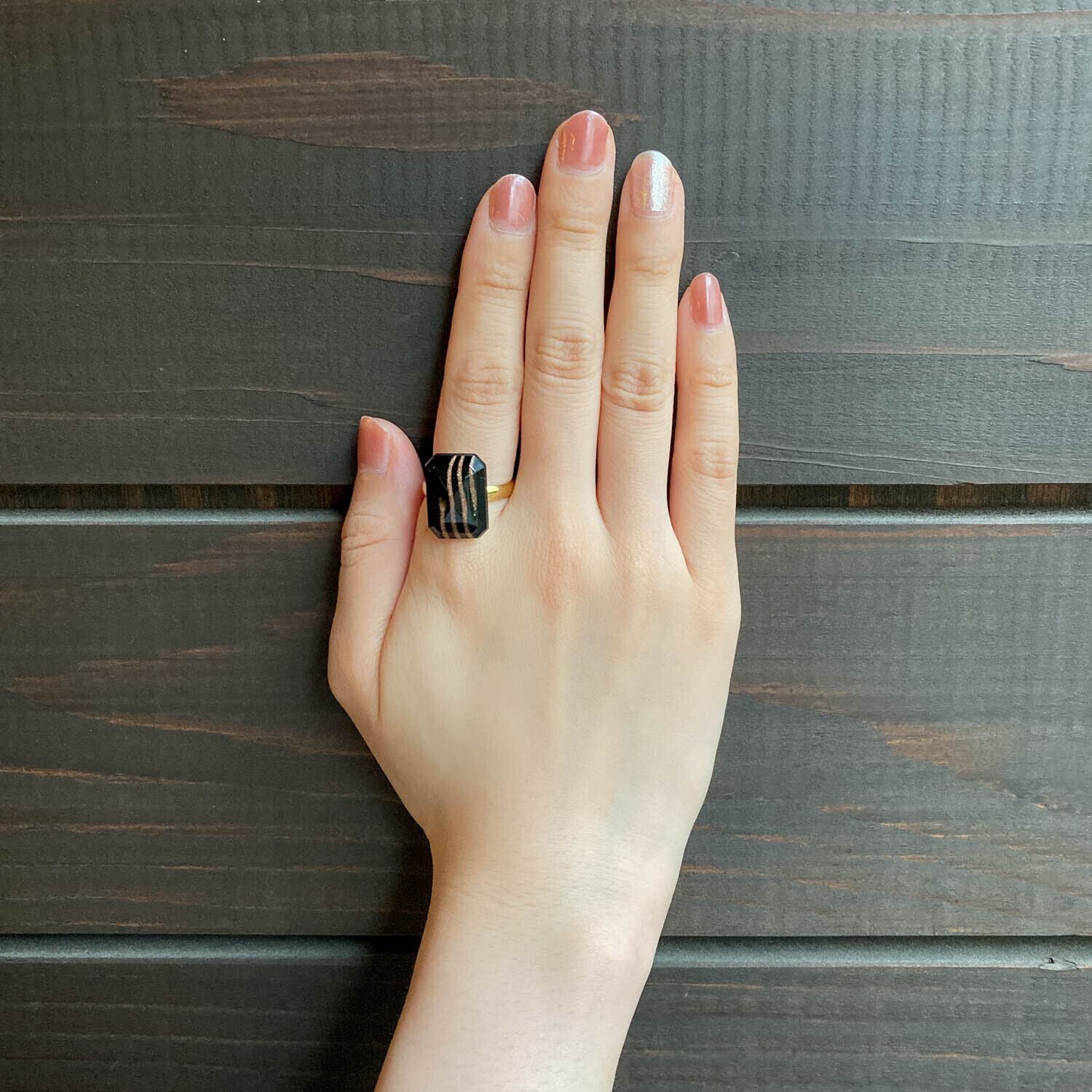 →トラ模様八角長方形チェコガラス(ファセットカット)