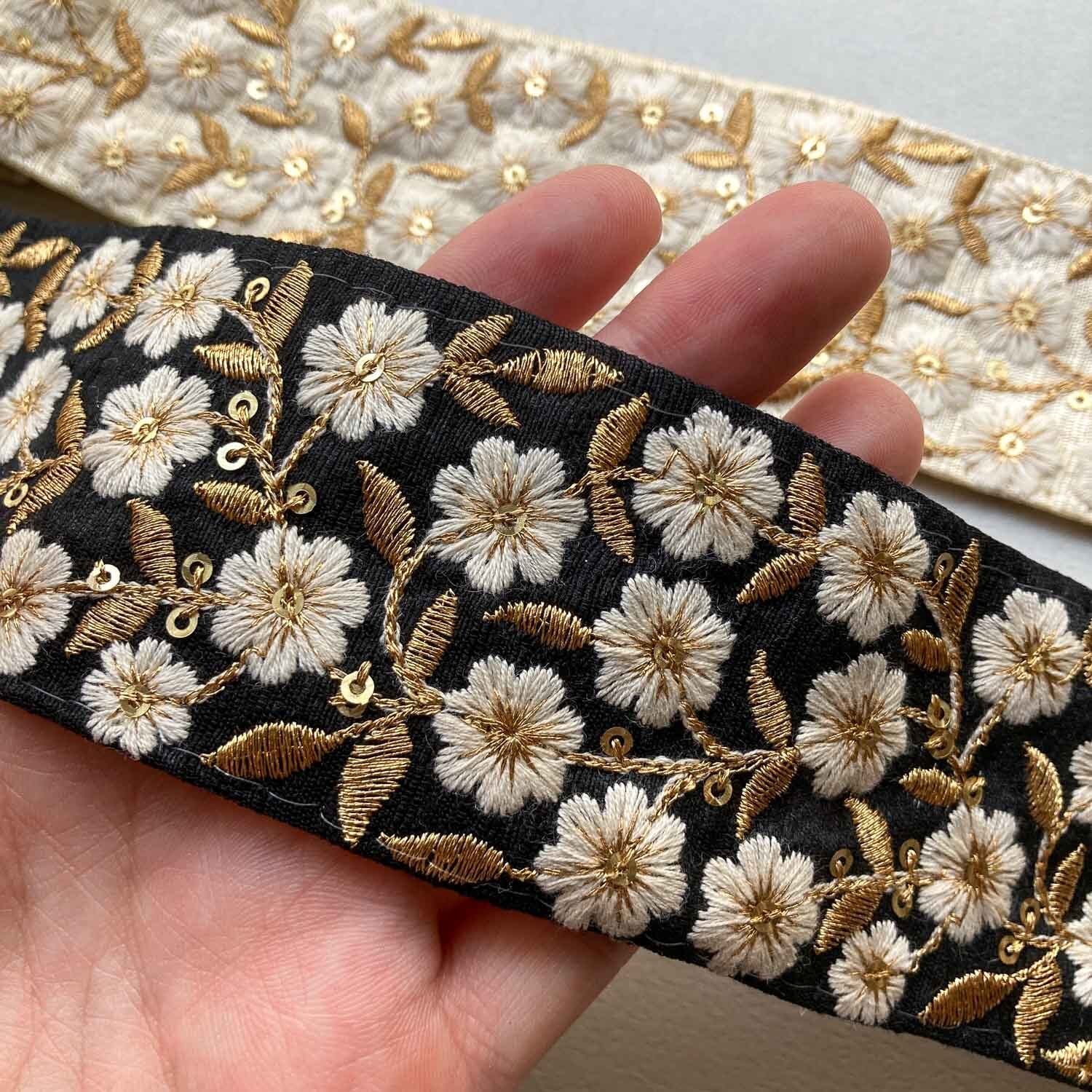 白花たくさんローシルク刺繍リボン(1mカット)