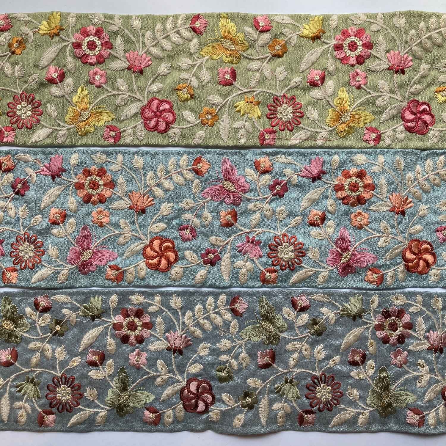 〈再入荷〉蝶とお花の幅太ローシルク刺繍リボン(1mカット)