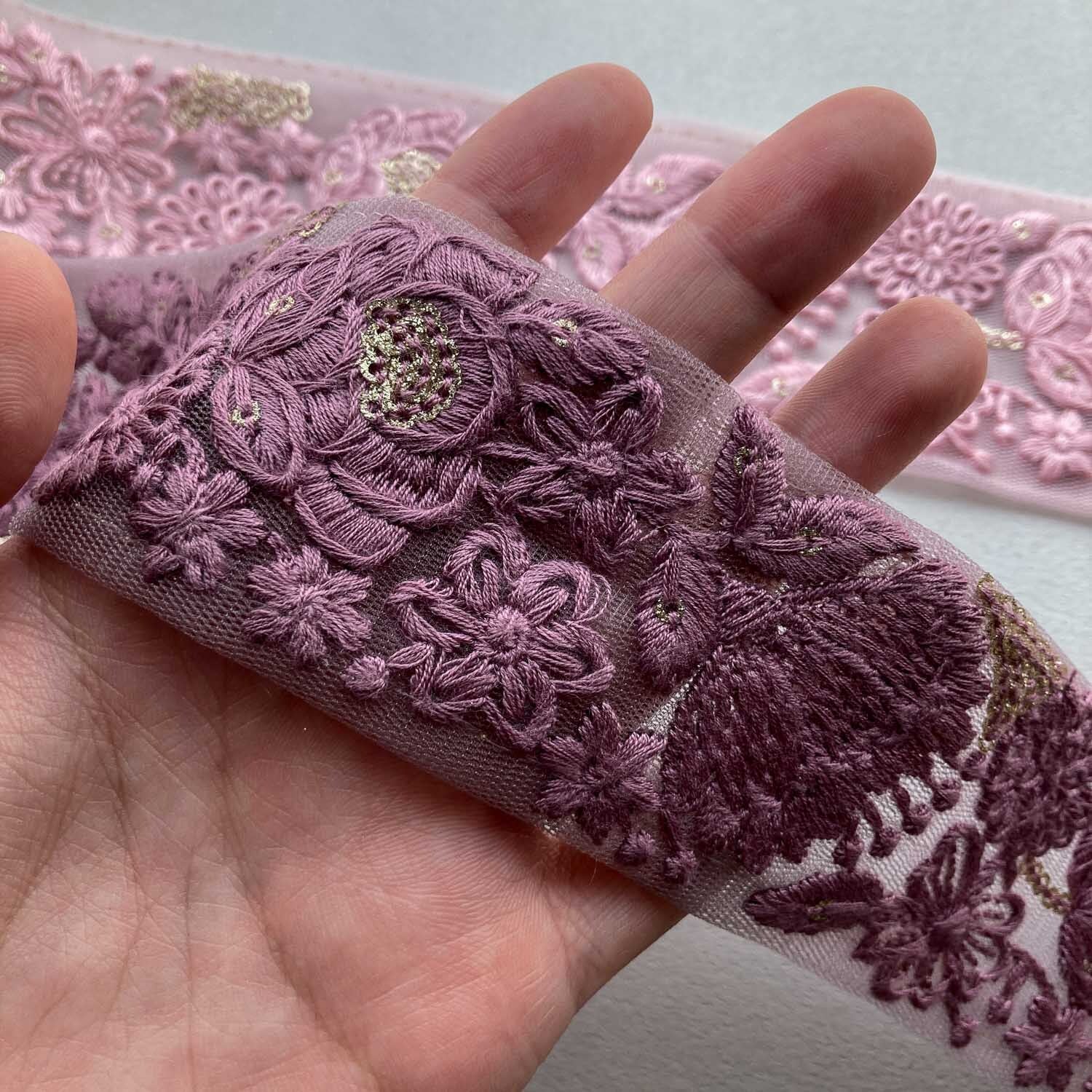 お花ぎっしりワントーン刺繍チュールリボン(1mカット)