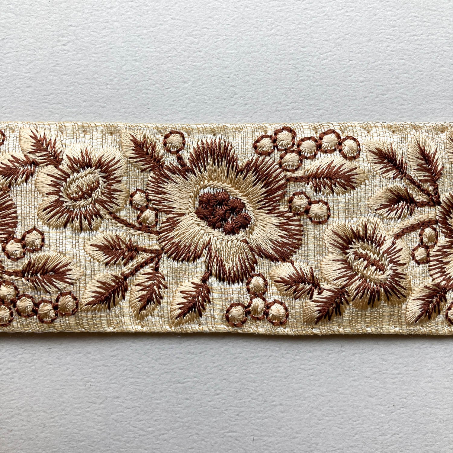 落ち着いたトーンの刺繍リボン。