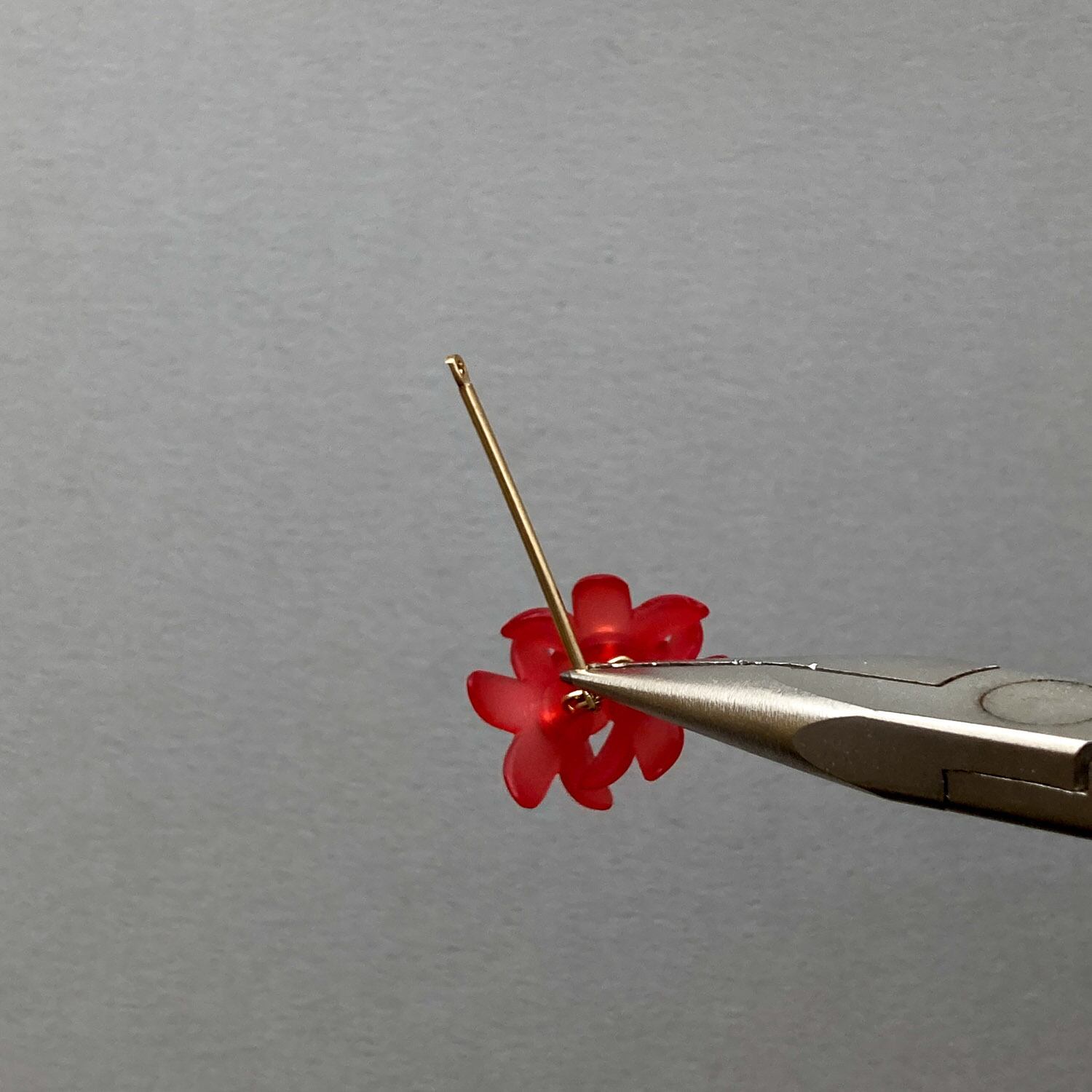 小ぶりの赤いお花が揺れる可愛らしいチャームです。