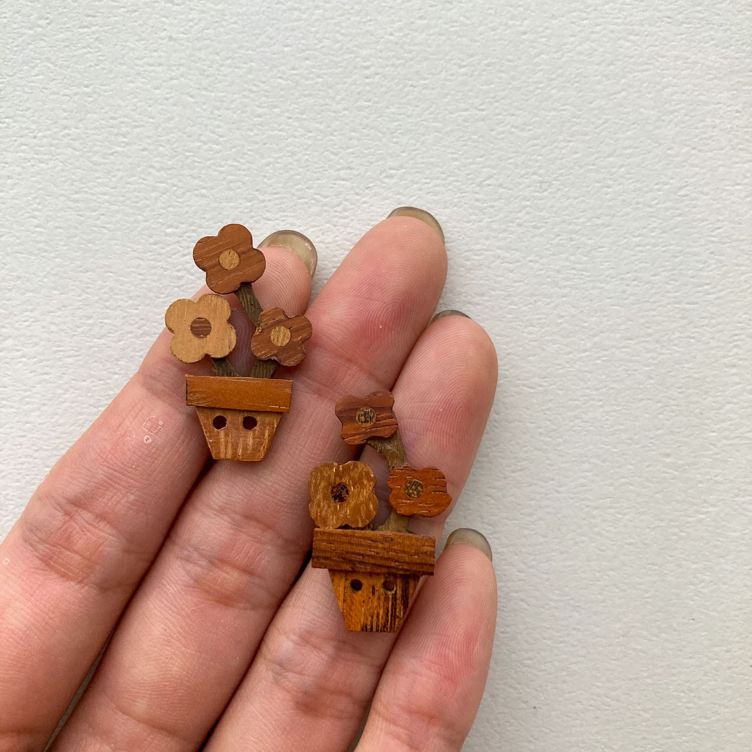 木のおもちゃみたいな可愛らしい鉢植えのお花ボタン。 飾りボタンとしても◎ ■販売単位:1個 ■サイズ: 約30×19×5mm ■ 素材:木 ■輸入元:フランス ■天然素材のため、模様や色、形に個体差がございます。予めご了承ください。 ■繊細な商品のため欠けたりしやすくなっております。 お取り扱いにご注意ください。 ■商品コード:BU1911028