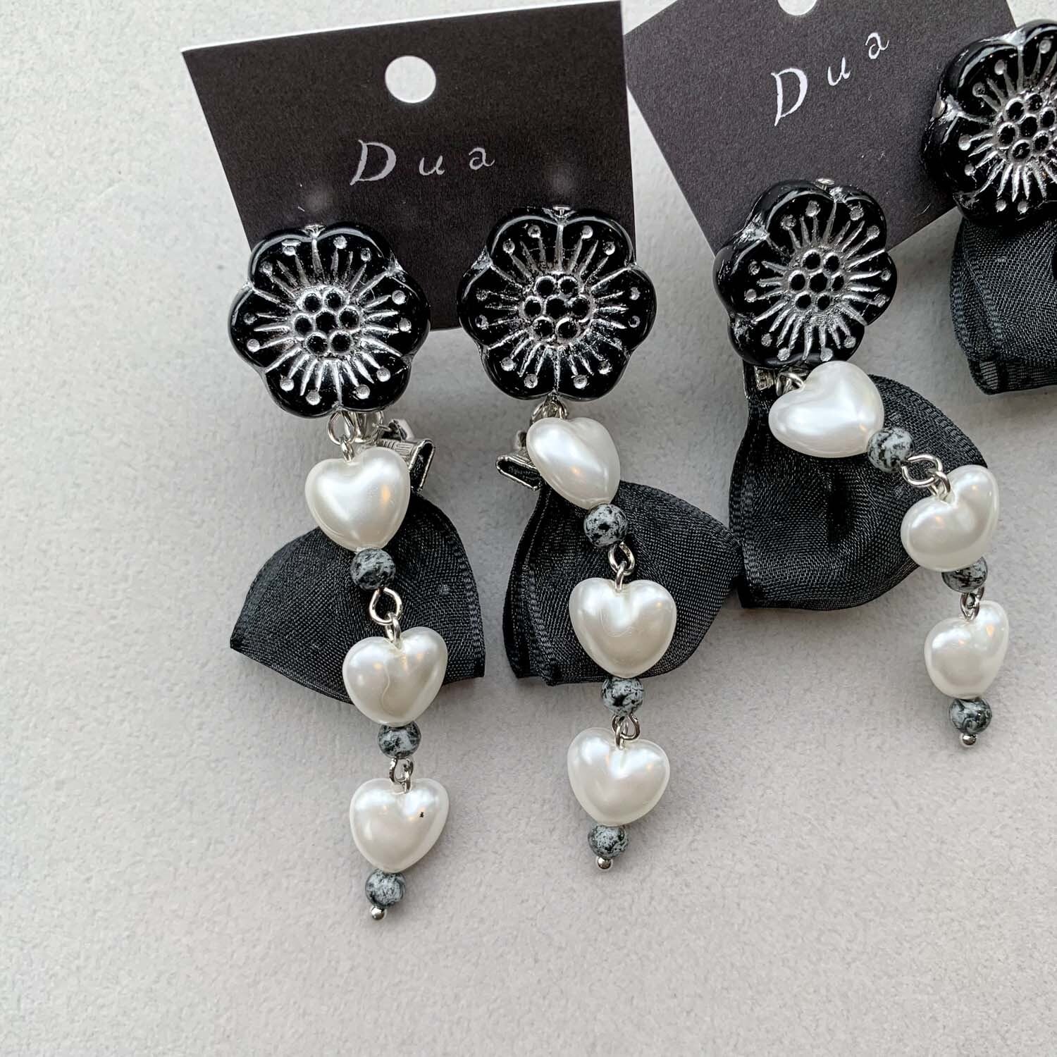 3連ハートとドットオーガンジーの〈ピアス/イヤリング〉