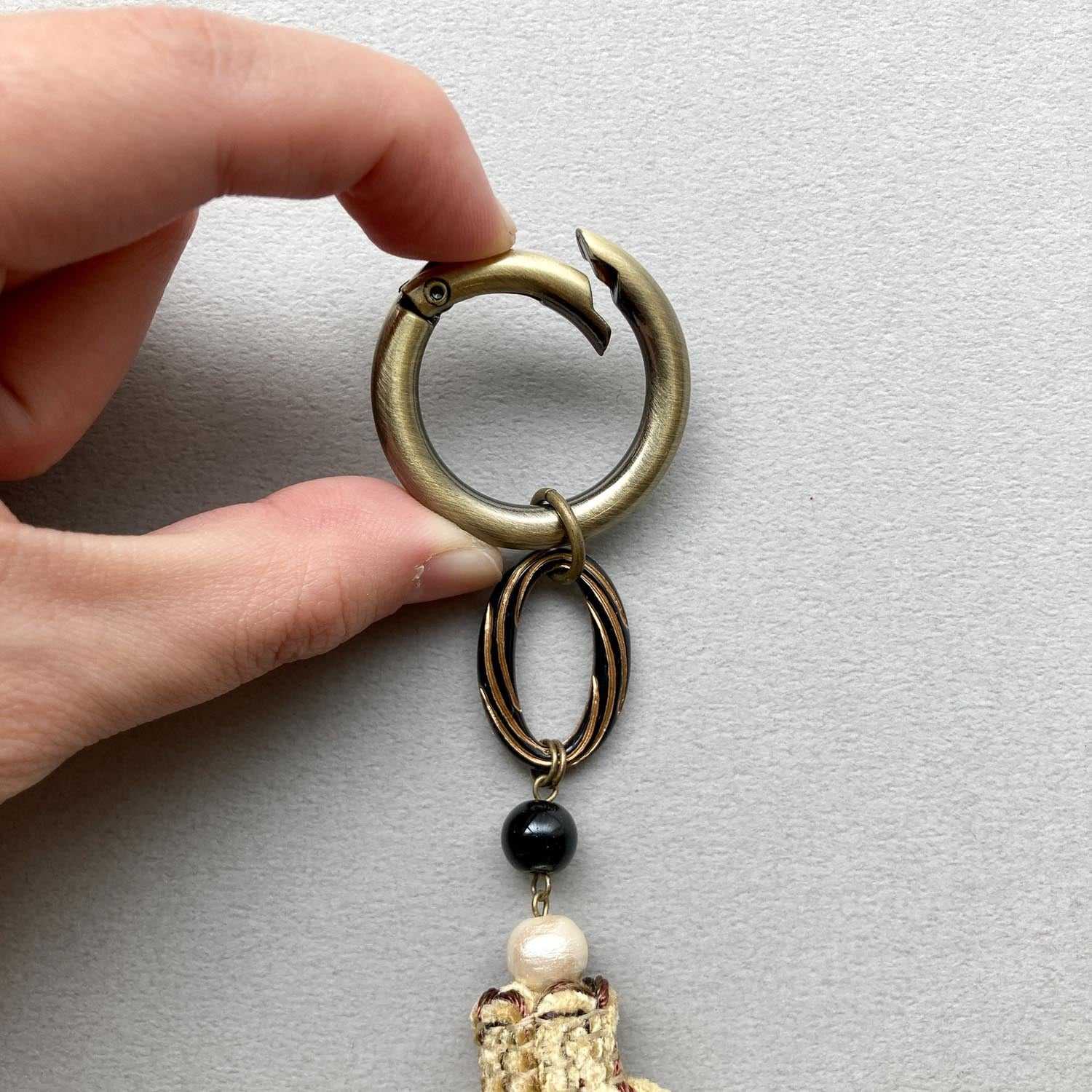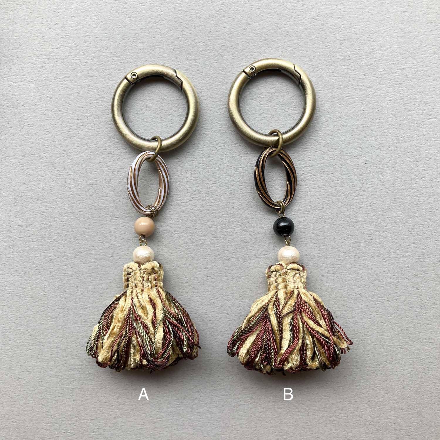 もこもこあたたかそうなタッセルのバッグチャーム。