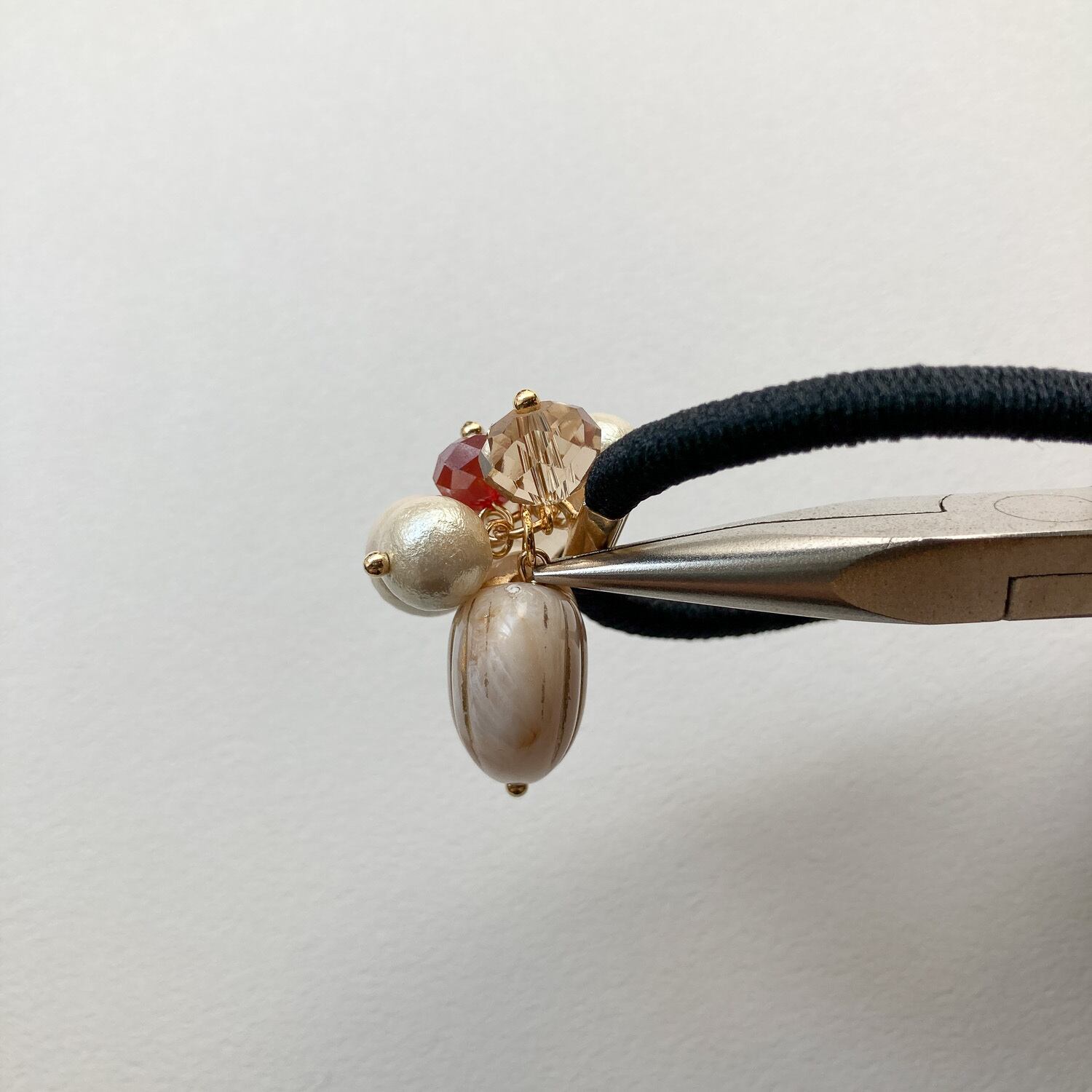 コットンパールやトーンの同じビーズと小さくまとめて