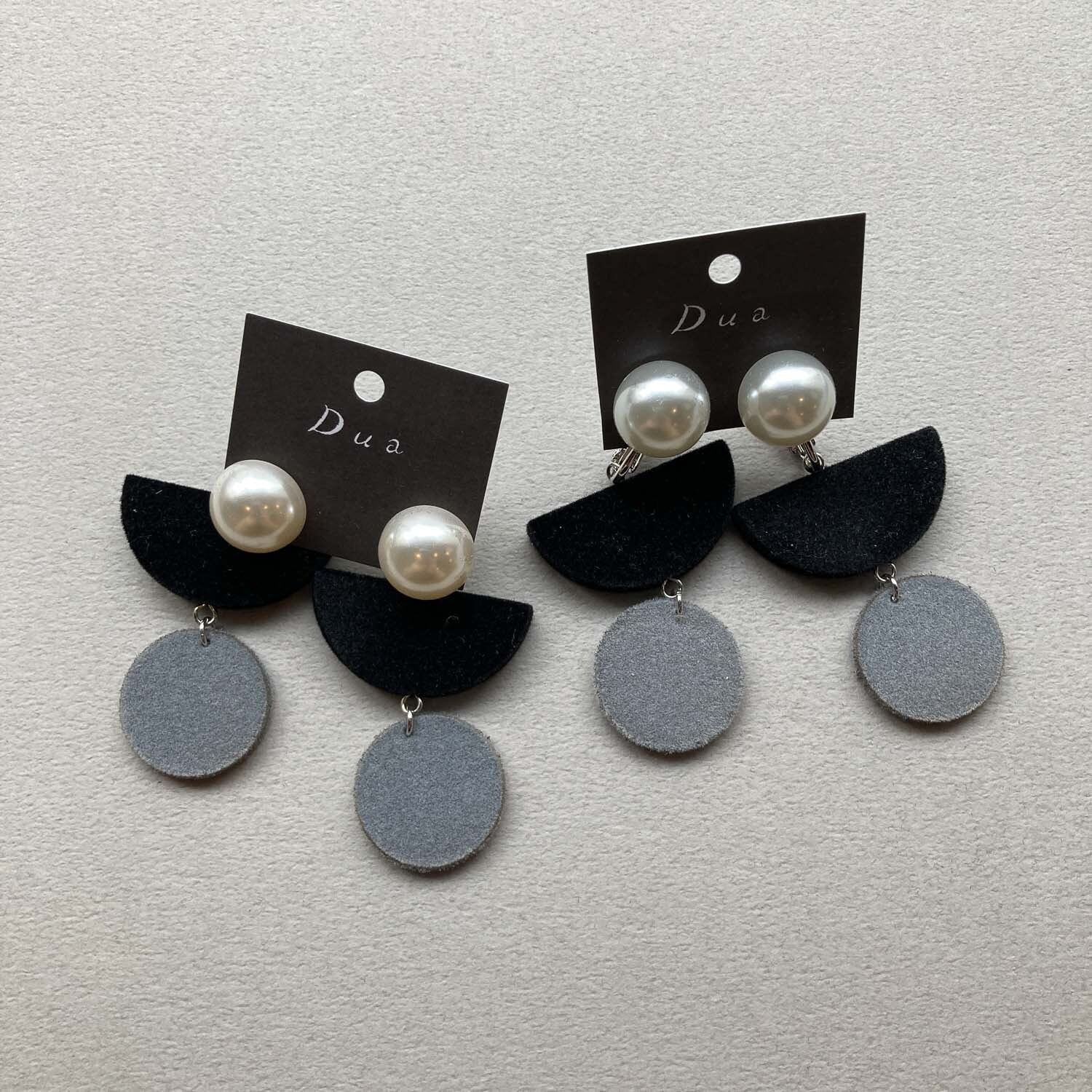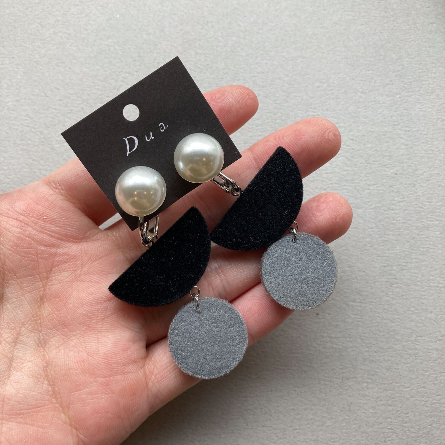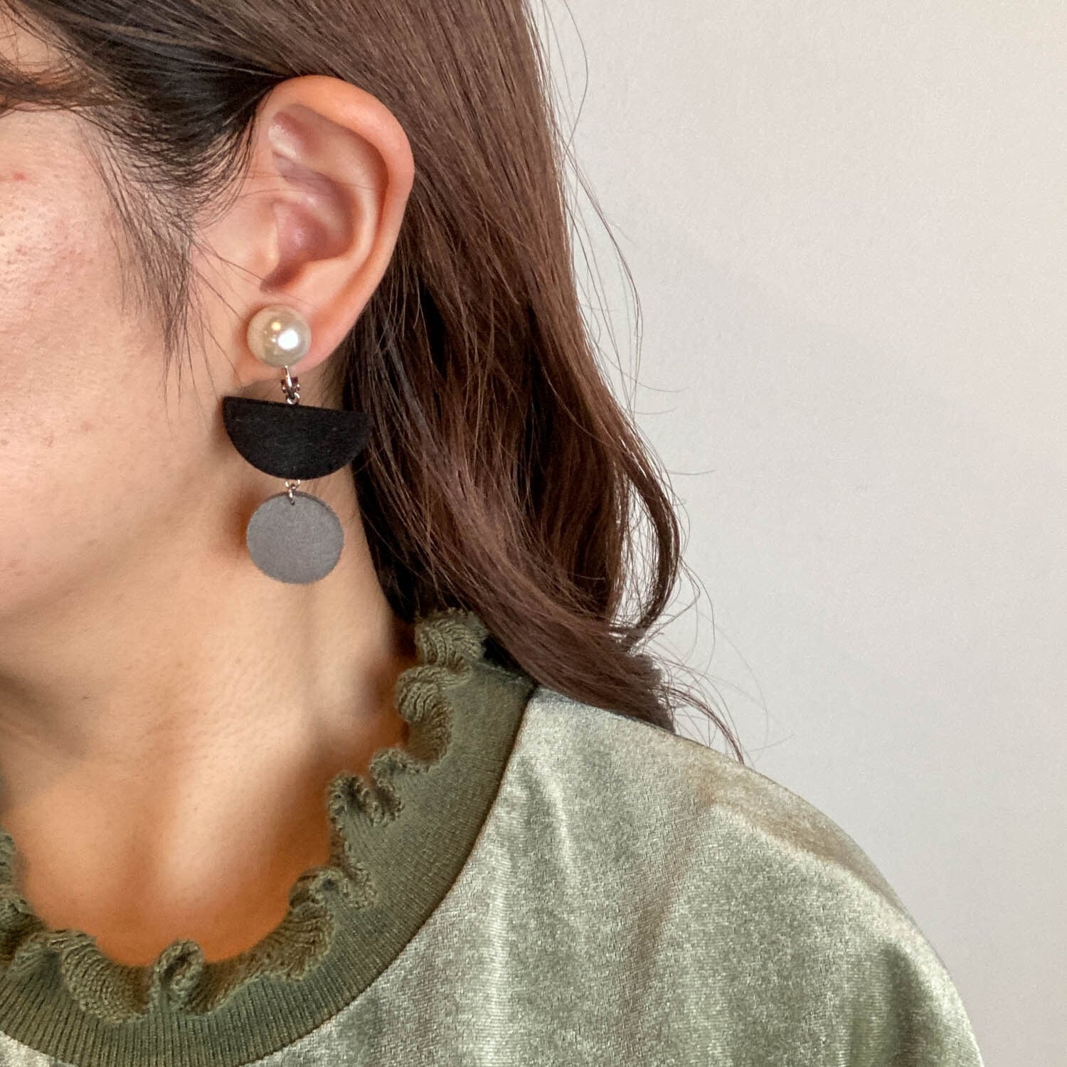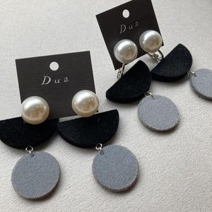 ベロア素材の半円ビーズとチャームがおしゃれな耳飾り。