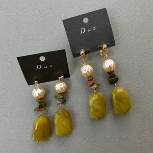 チェコガラスパールとピスタチオカラービーズの〈ピアス/イヤリング〉