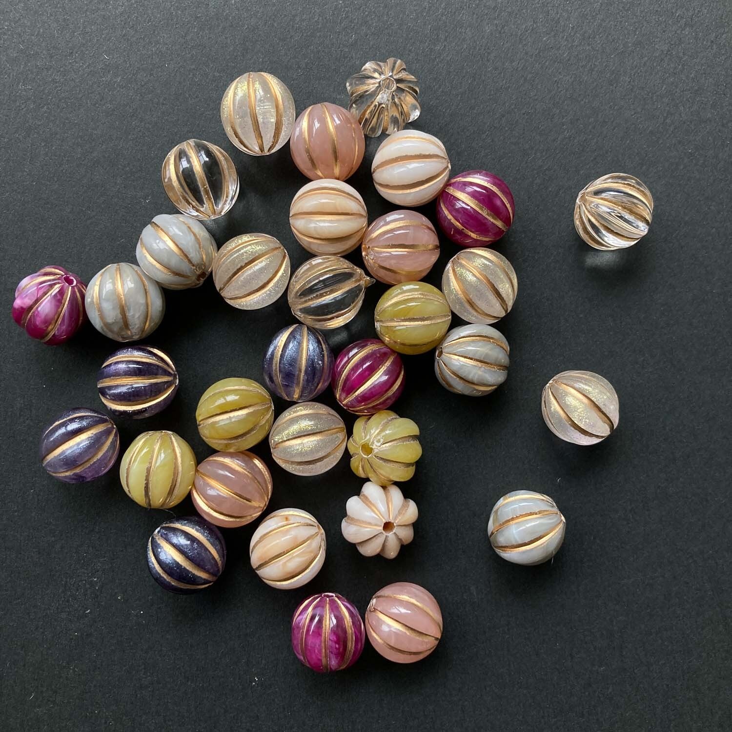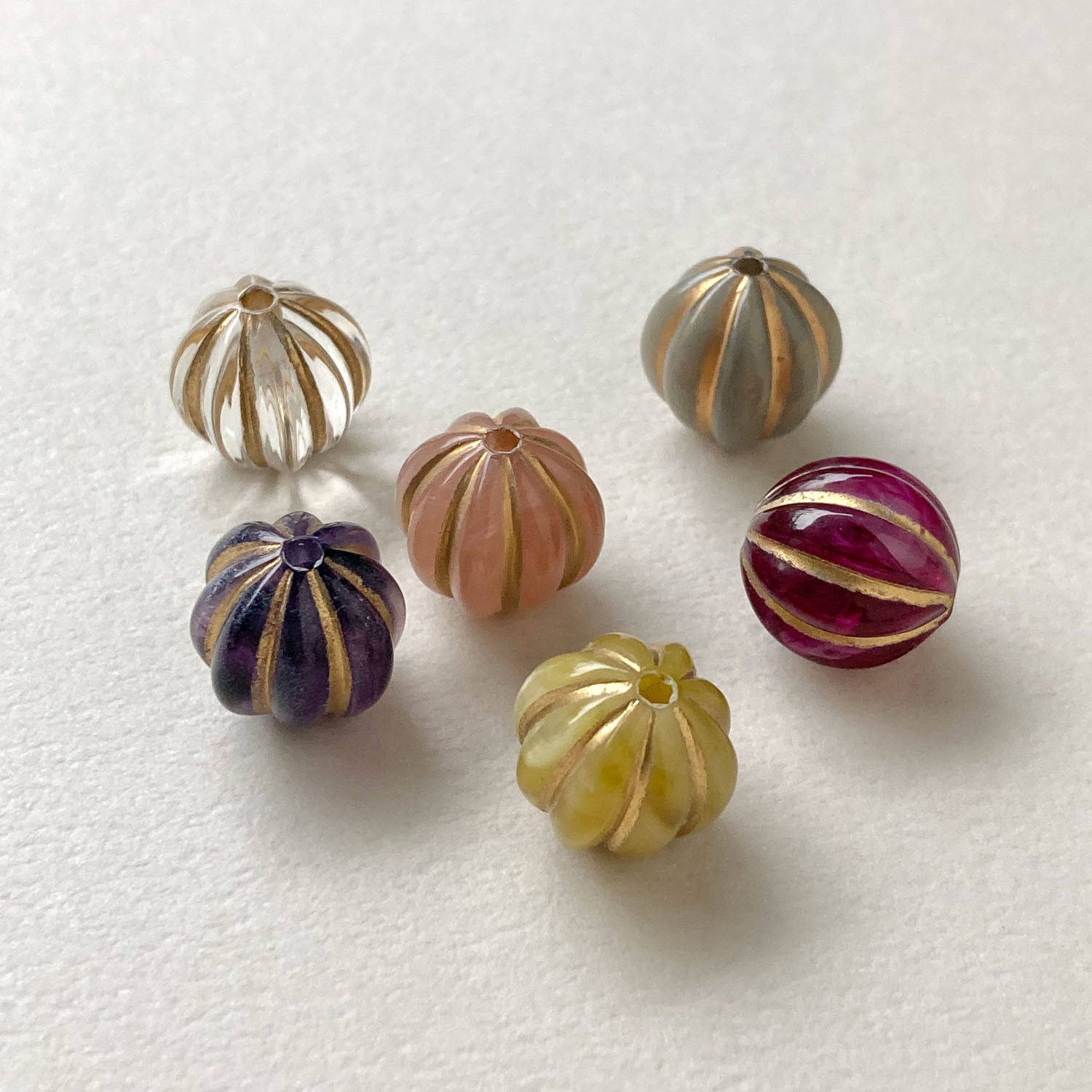 〈再入荷・新色追加〉でこぼこゴールドラインコルゲートビーズ(4p)
