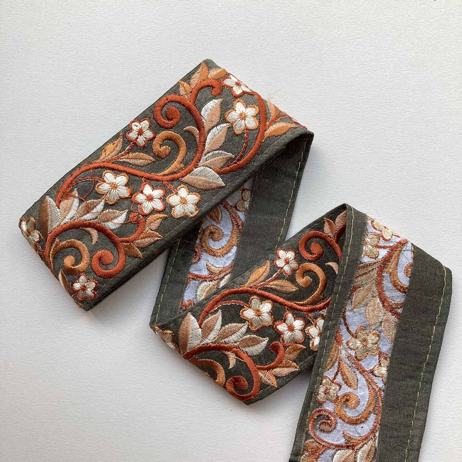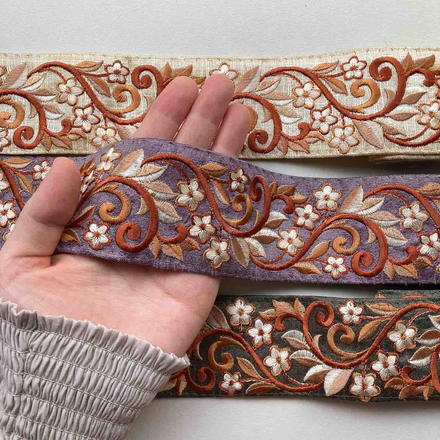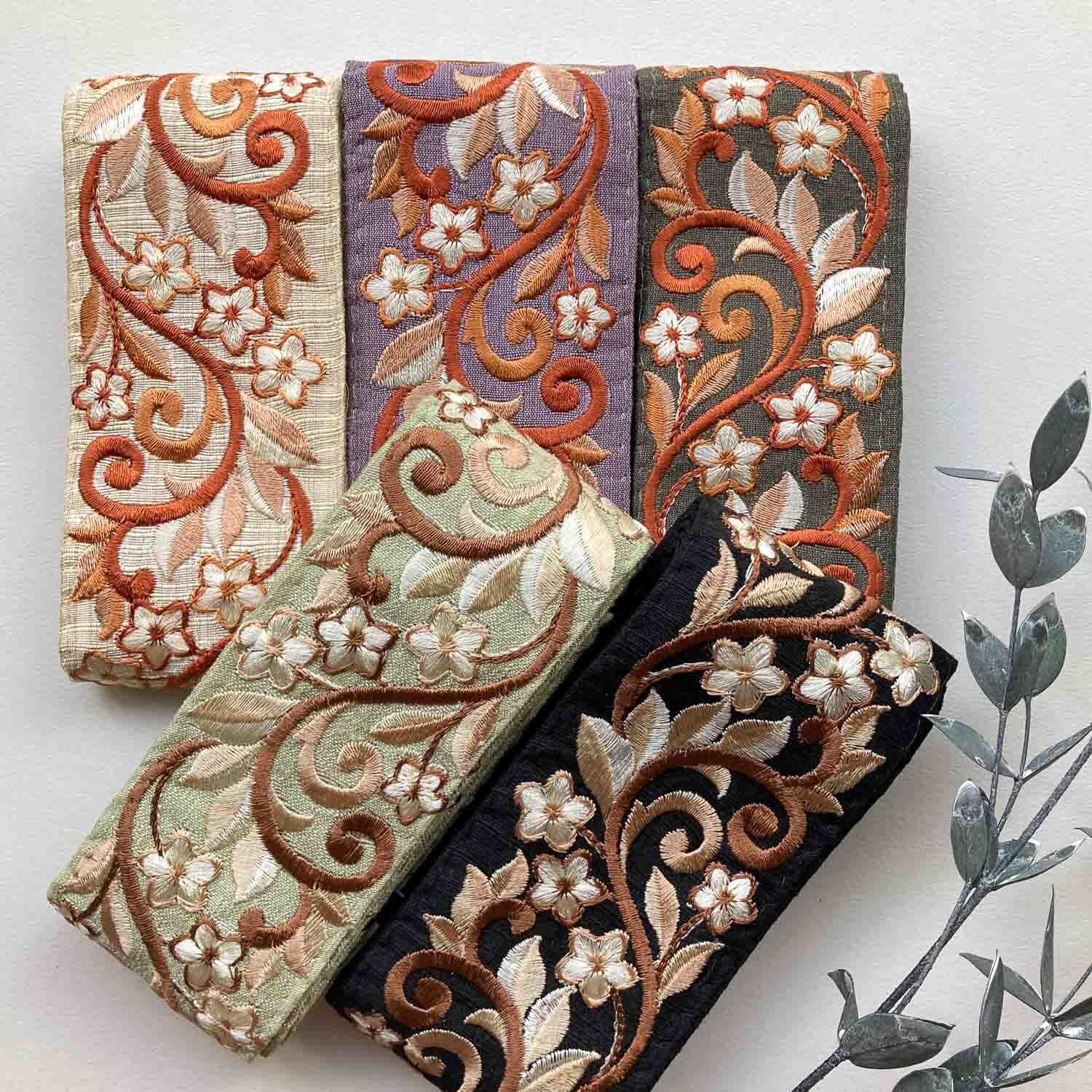 〈再入荷〉くるくる蔦と小花の刺繍リボン(1mカット)