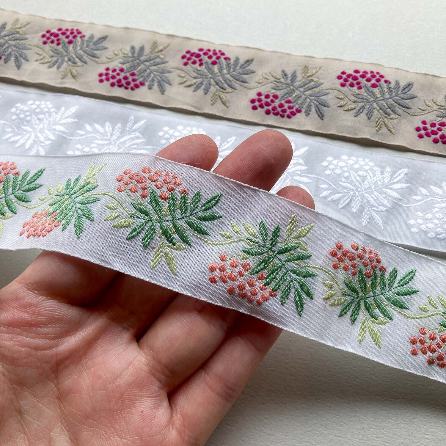 Kafka つぶつぶ木の実と葉っぱのジャガードリボン(50cmカット)