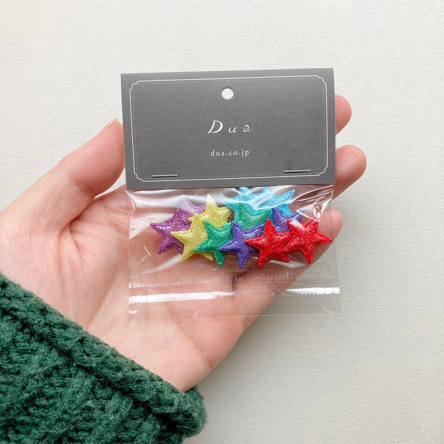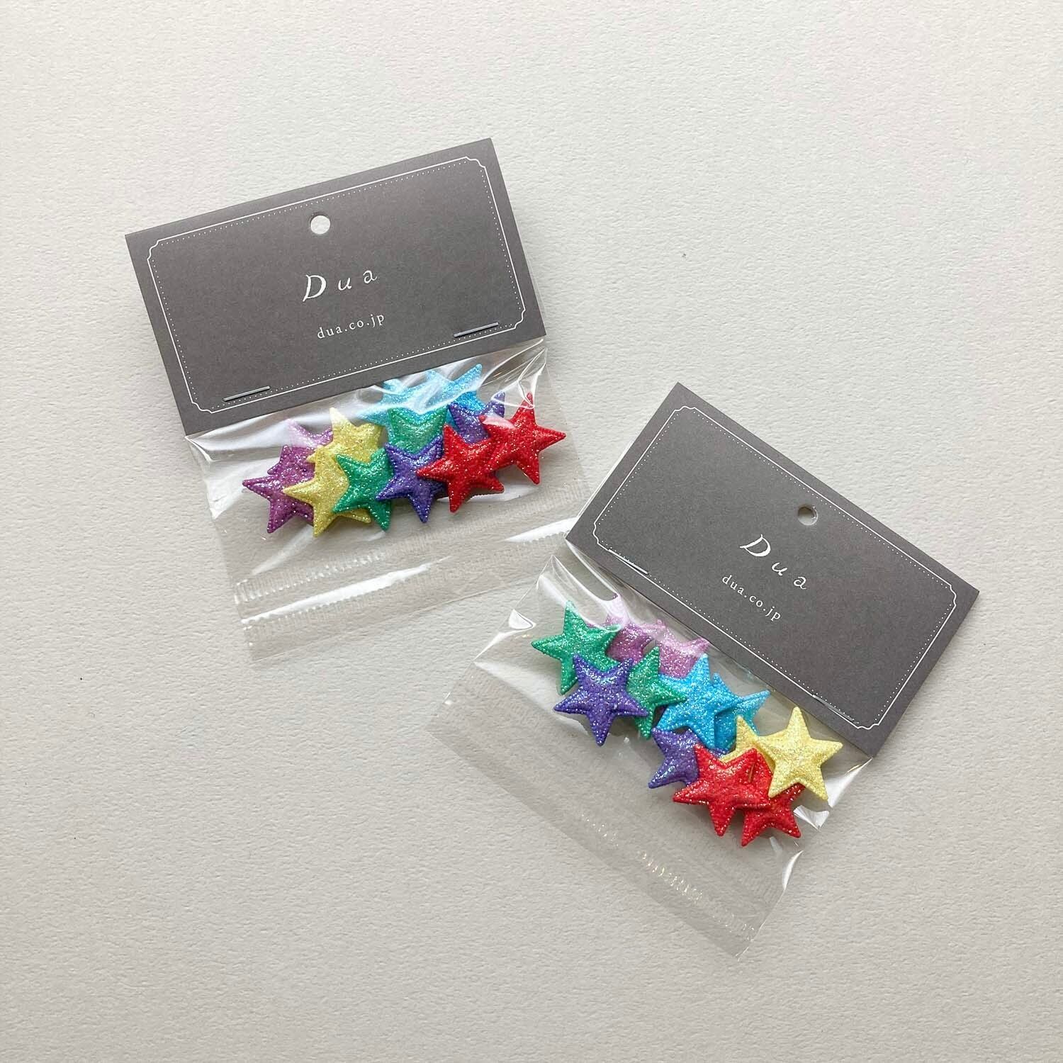 ラメ入りのカラフルな星たちが華やかなボタンパック。