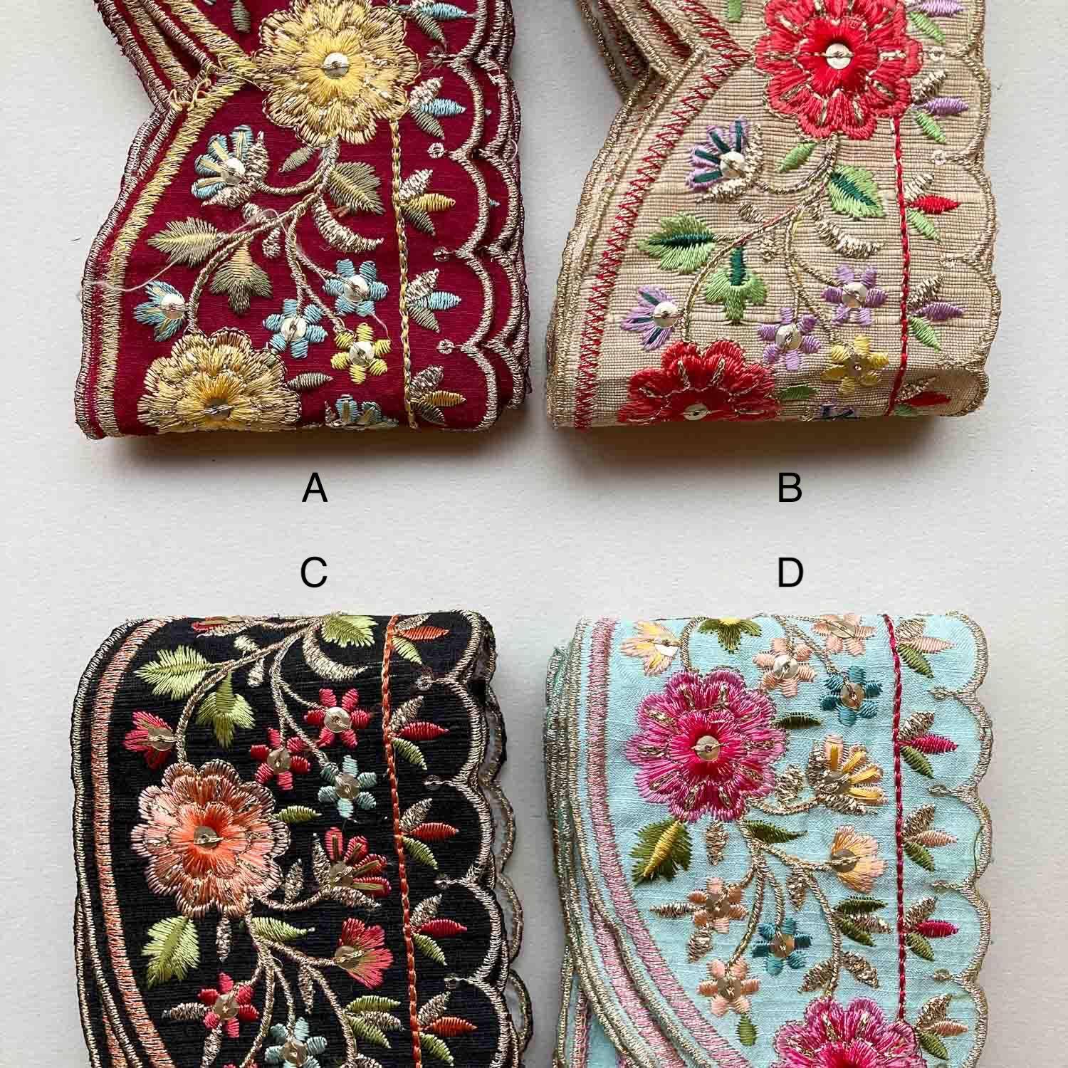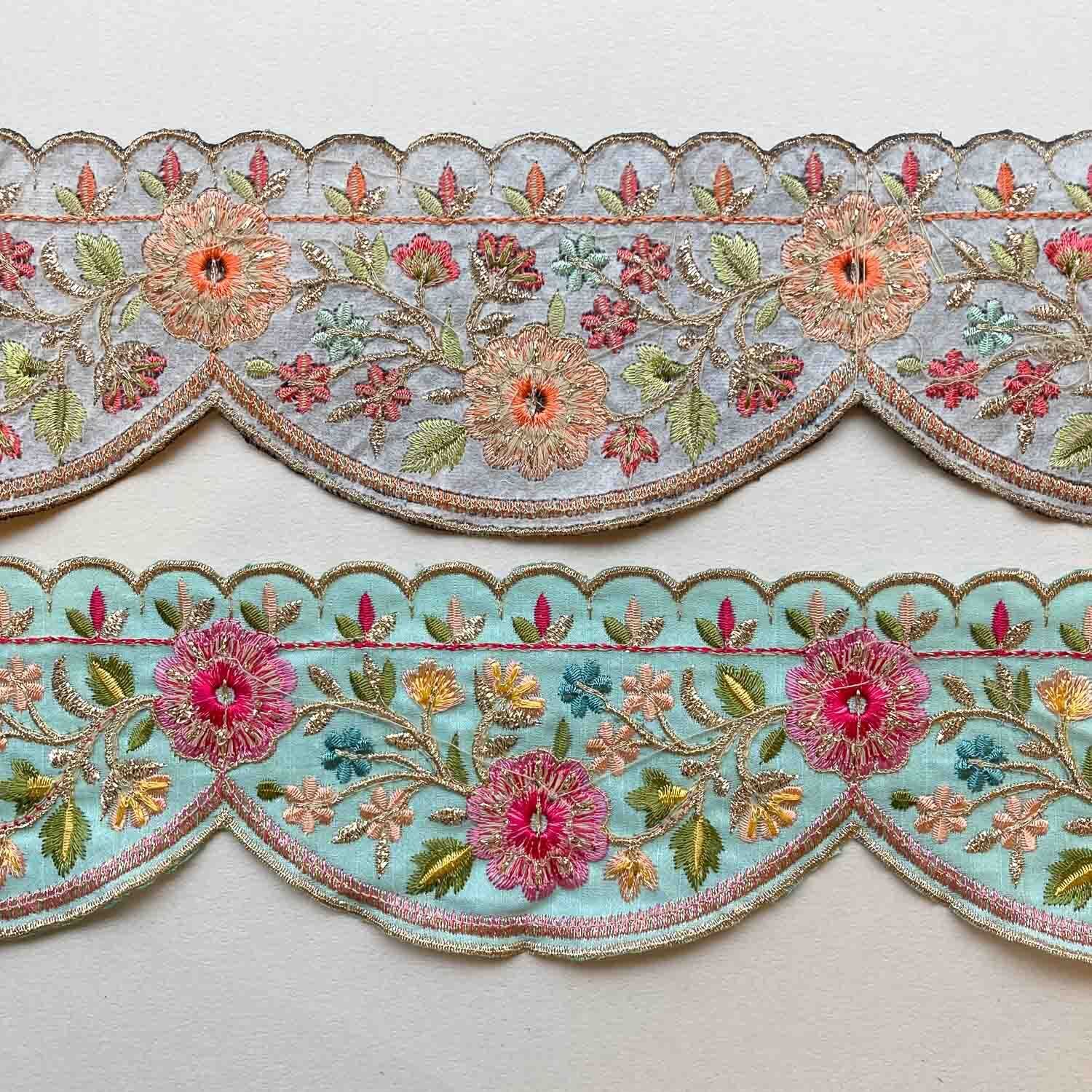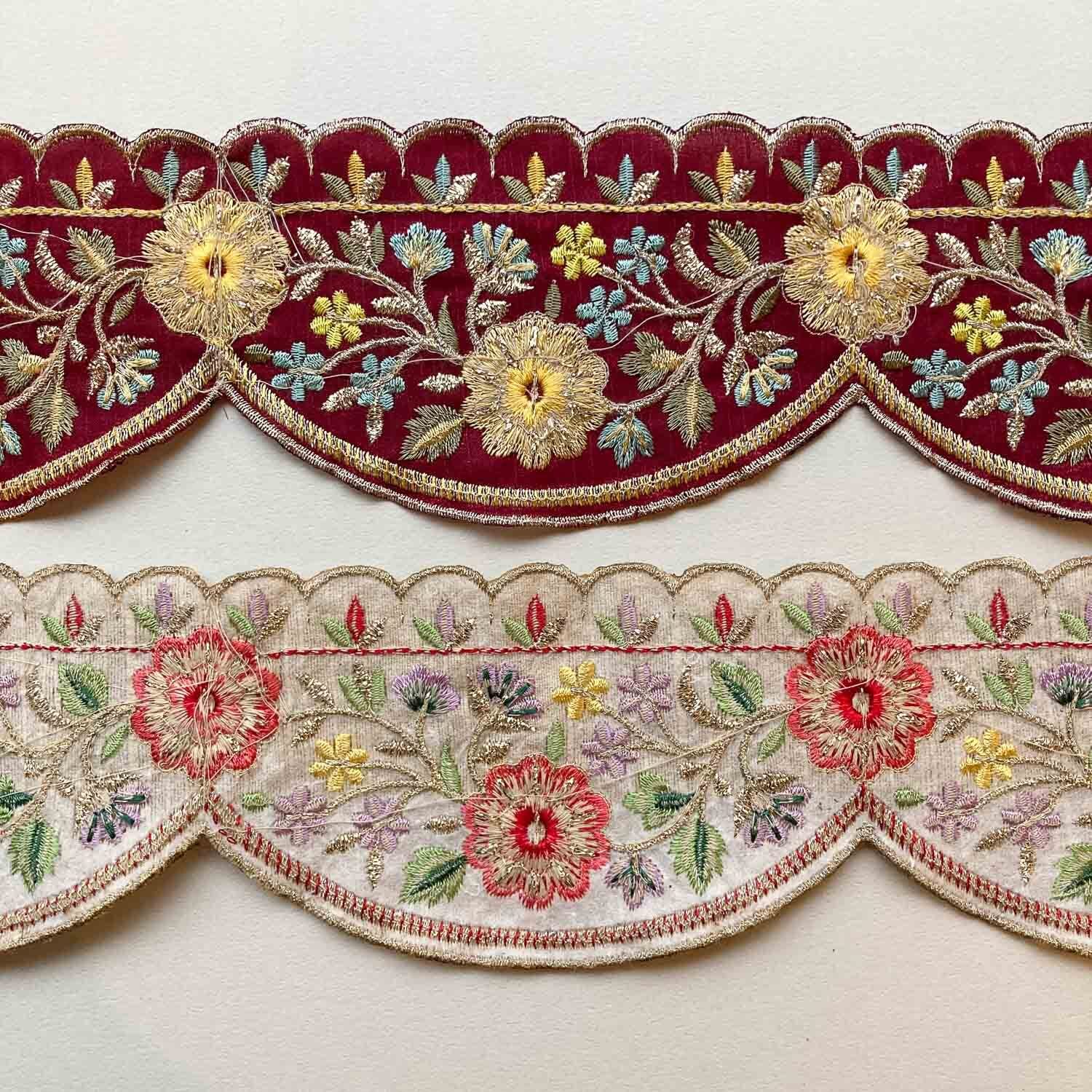 両縁アシメスカラップお花刺繍ローシルクリボン(1mカット)