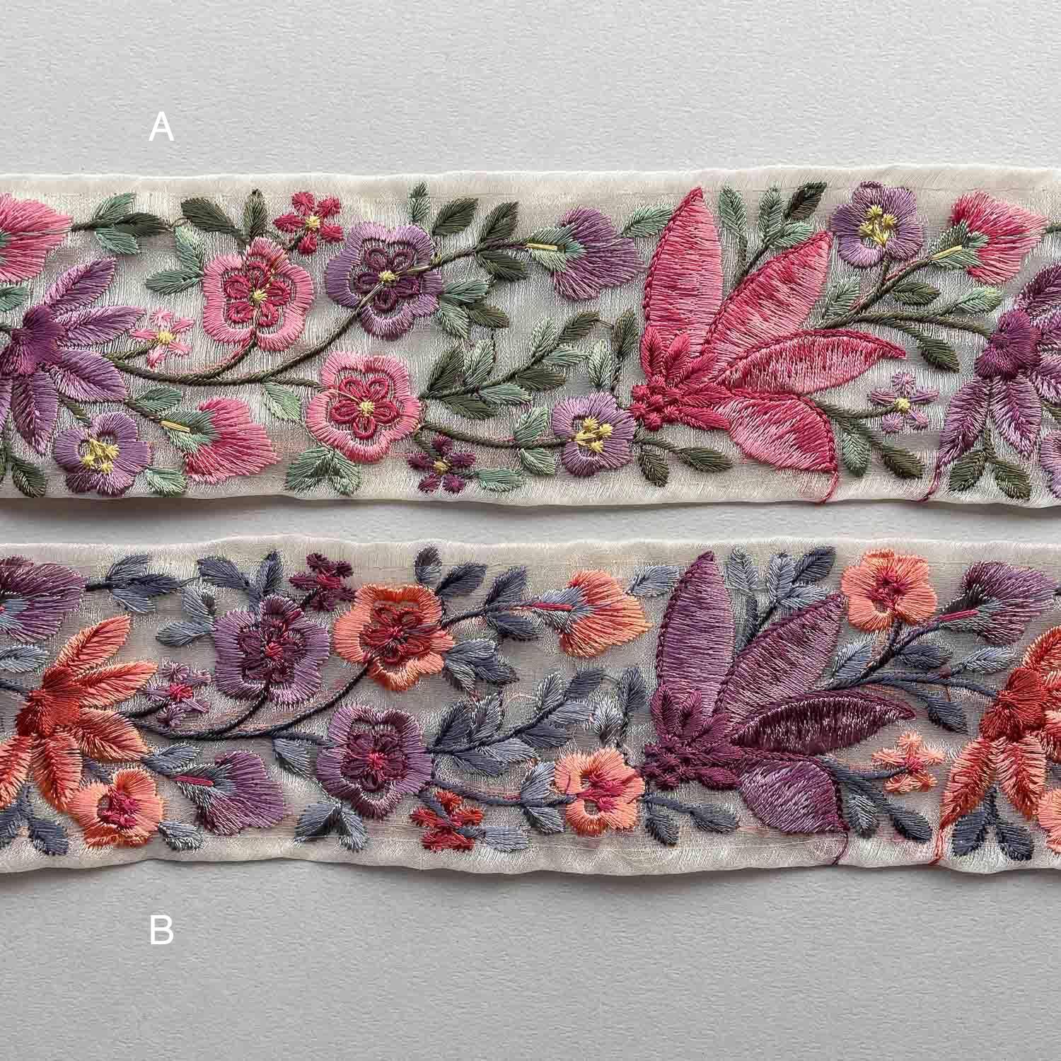 〈再入荷〉モクレン風カラフル刺繍オーガンジーリボン(1mカット)