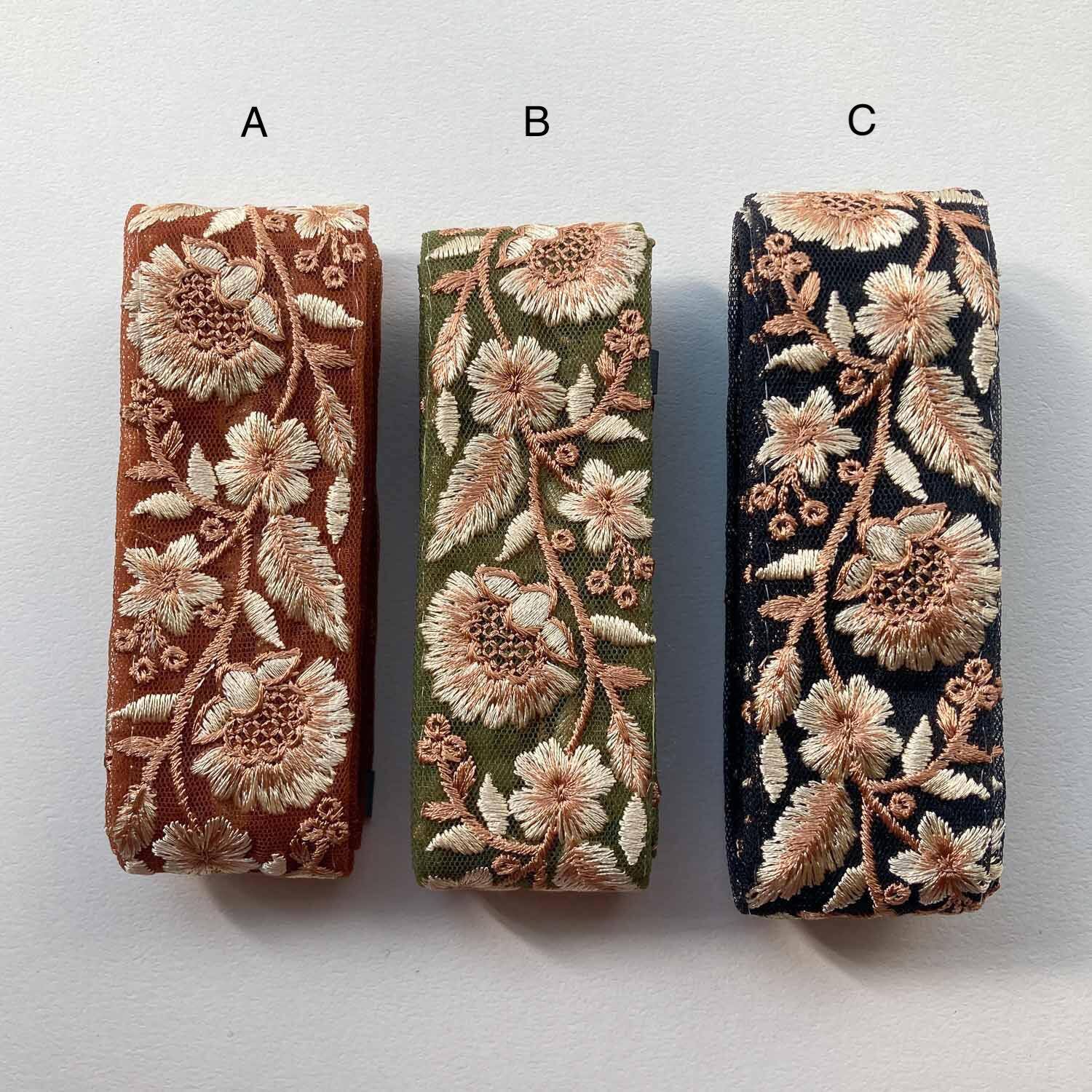 ベージュ系の糸を使用した優しい色合いの刺繍リボン。
