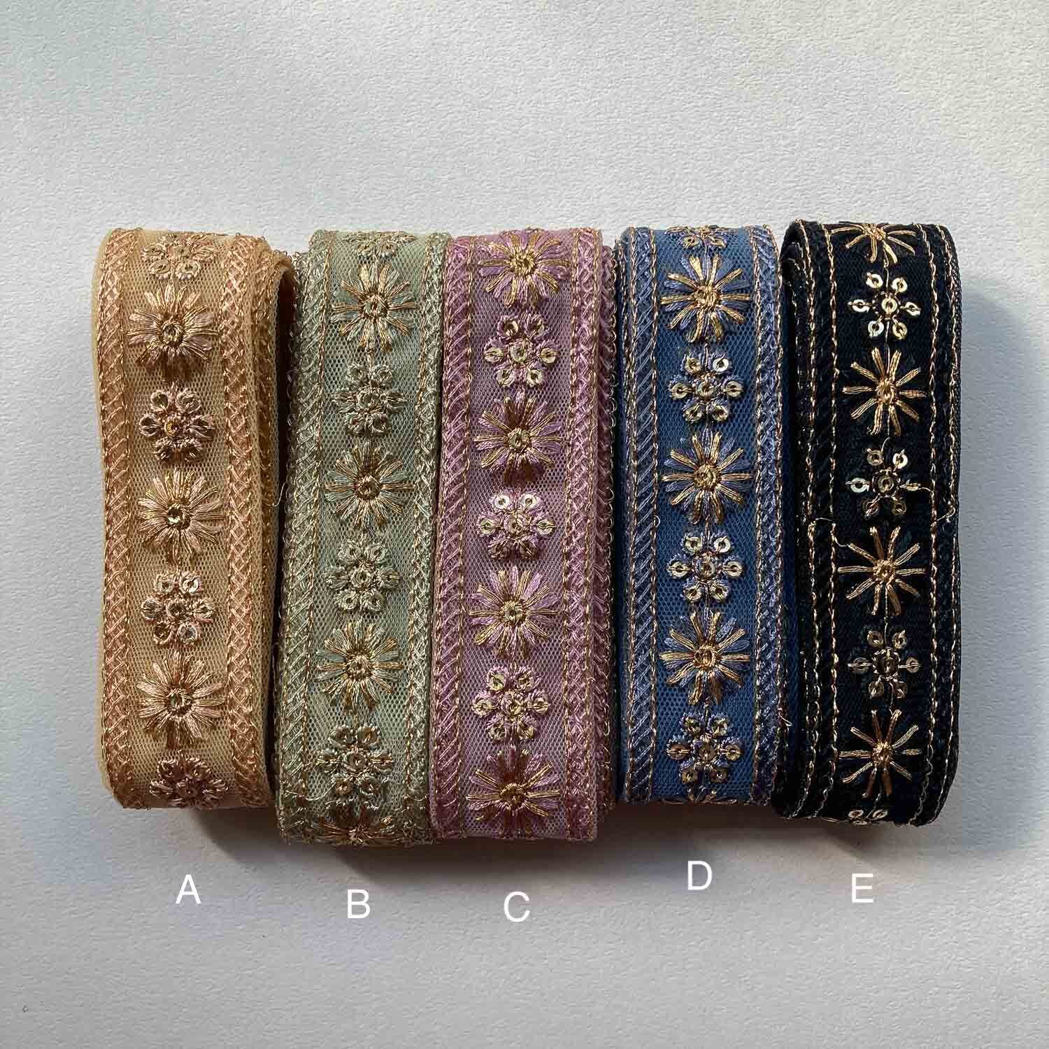 ライン縁2種のお花刺繍チュールレース(1mカット)