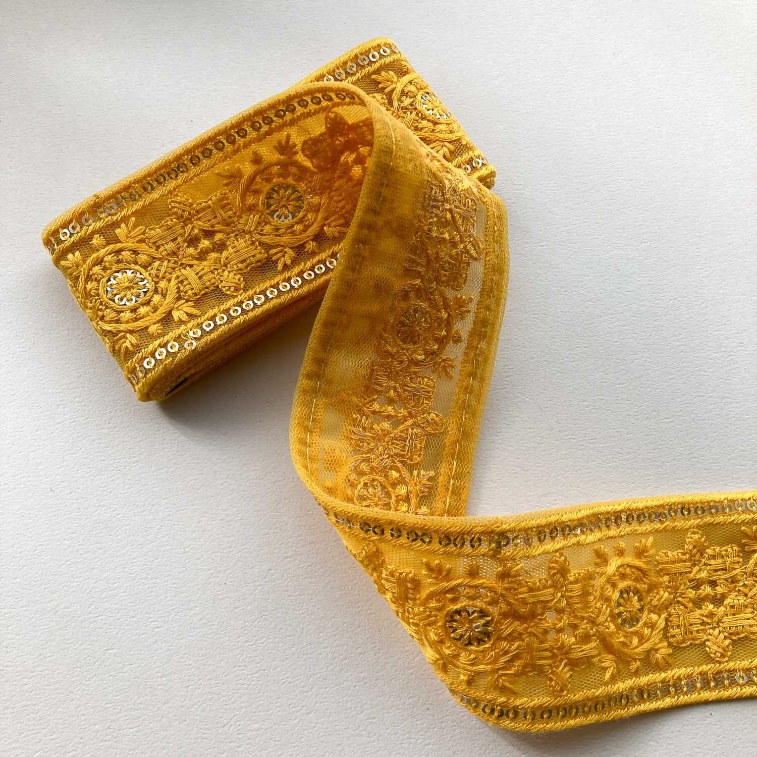 〈最終入荷〉エンブレム風模様のワントーン刺繍レース(1mカット)《黄色・オンライン限定》