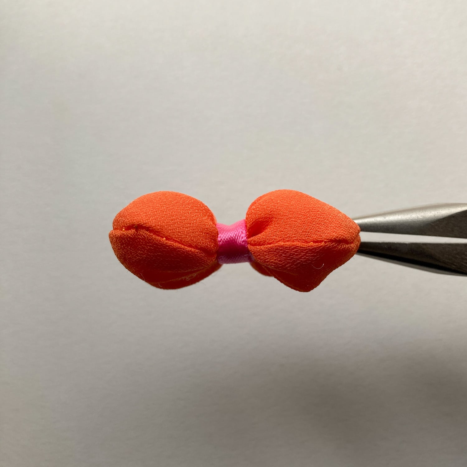中心の留めのピンクが可愛いリボンパーツ。
