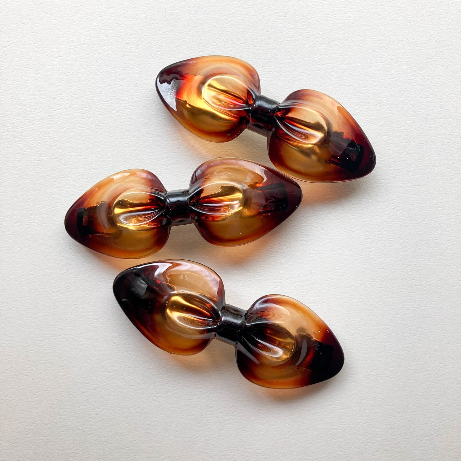 きゅっと結んだリボンのような形のべっ甲風バレッタ。